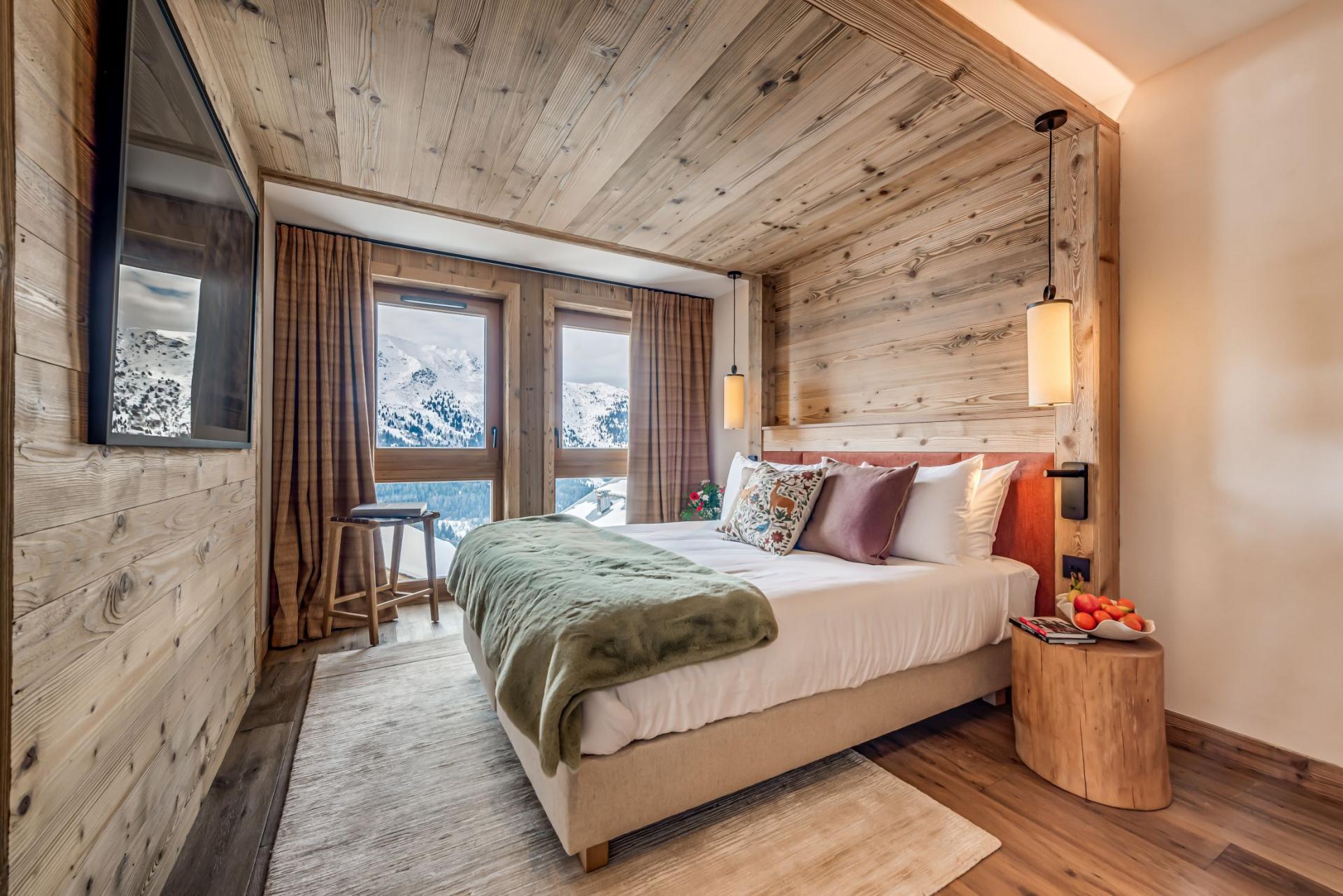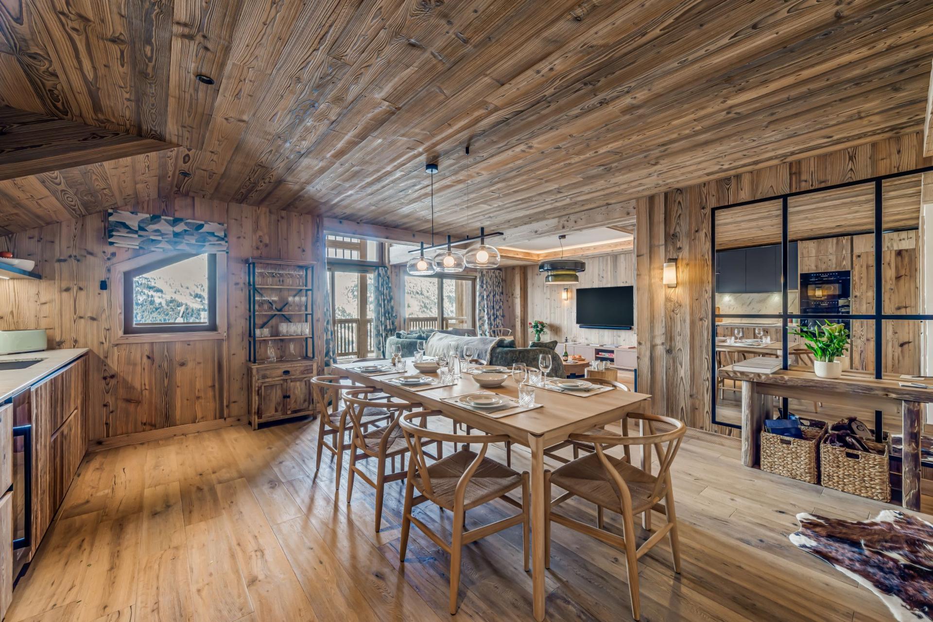Situated in the esteemed Le Bois des Ours complex at the Rond-Point des Pistes, Apartment Champlain presents a remarkable mountain sanctuary in Méribel's centre. This premium serviced apartment artfully combines modern sophistication with traditional alpine character, delivering supreme comfort and accessibility. Featuring direct slope access and magnificent mountain scenery, Champlain stands as the ideal destination for those desiring a refined yet welcoming retreat in the French Alps. Apartment Champlain is a newly constructed residence, meticulously crafted with understated furnishings, muted colours and refined gold details that maximise the daylight. The accommodation sleeps six adults across three well-appointed en-suite bedrooms, plus two children in a custom-designed 'Coin Montagne' bunk area. The property boasts an expansive open-concept living and dining space with comfortable seating and direct access to a private balcony and terrace, showcasing spectacular mountain vistas. A well-equipped kitchen connects to an open-plan dining space accommodating 10 guests, perfect for shared evening meals. Moreover, all necessary children's amenities, including high chairs and cots, can be pre-arranged to ensure a smooth arrival. The apartment includes a dedicated television room, ideal for film screenings. Private entry to the building's fitness centre and spa facilities (16+ years) provides the perfect post-skiing relaxation option. Your exclusive ski and boot storage area enables convenient slope access. The property also includes private parking, offering optimal convenience for guests arriving by car. Apartment Champlain occupies a prime ski-in/ski-out position at the Rond-Point des Pistes, among Méribel's most coveted locations. Situated for maximum convenience, the apartment lies moments from select shops, drinking establishments, and fine dining venues, ensuring a flawless luxury skiing experience. Apartment Champlain suits families or intimate groups of friends seeking subtle luxury and immediate access to the Three Valleys' world-renowned skiing. Whether visiting for an energetic ski holiday or a peaceful mountain escape, this serviced apartment—complemented by a dedicated pre-arrival personal concierge—ensures every detail is seamless and memorable.
