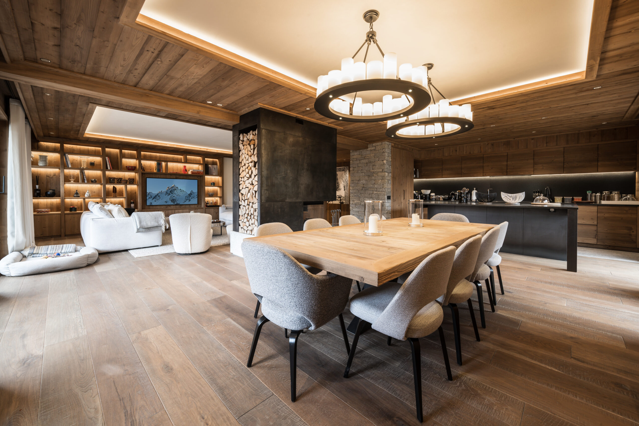 Nestled in the heart of the authentic village of Courchevel Le Praz, the Marmottons residence embodies the perfect blend of mountain architectural elegance and refined modern comfort. Located on the second floor, the Deniola apartment stands out with its contemporary style and high-end finishes, offering a sophisticated and perfectly harmonious atmosphere. With a generous area of 225 sq m, this exceptional property can accommodate up to 8 guests and spans two levels. The main floor features three en-suite double bedrooms, a ski room equipped with a boot dryer, a laundry room, and an intimate lounge with television. The upper floor opens onto a vast reception area: a bright living room with bay windows, a welcoming dining room and fully equipped open kitchen, complemented by an elegant office corner and a sumptuous en-suite master bedroom. Just steps away from the Praz cable car, skiers can reach the iconic Courchevel 1850 in six minutes and access the vast Three Valleys domain. The authentic charm of Le Praz village, with its picturesque streets, shops and welcoming restaurants, extends the experience of a unique mountain lifestyle, ideal for enjoying après-ski.