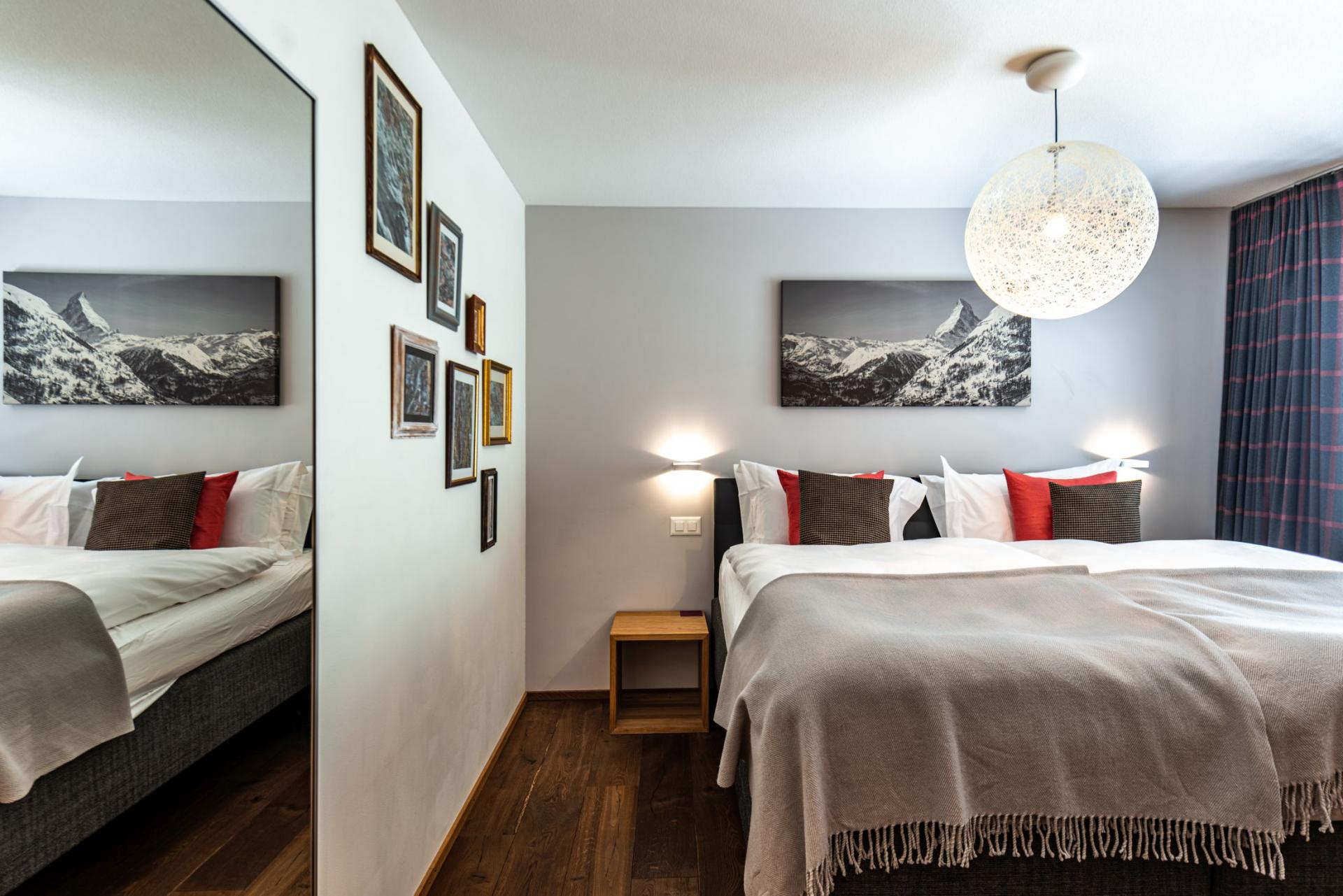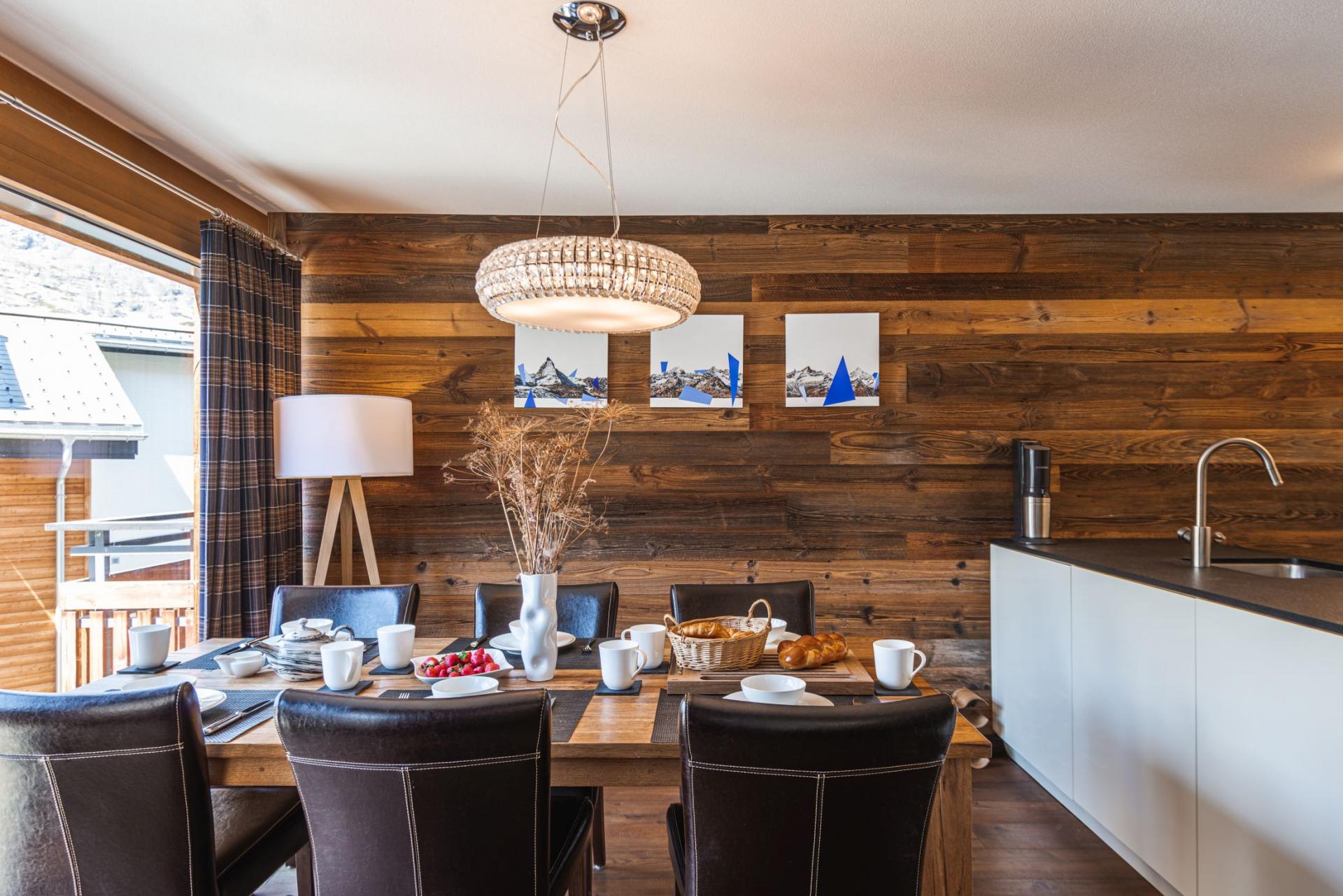 Fusing contemporary and traditional Alpine architecture with the spirit of the mountains, Apartment Petit evokes a sense of calm and tranquilly in the exclusive Alpine village of Zermatt. This exquisite first-floor apartment of 130m2 is centrally situated and has spectacular views of the Matterhorn and the nearby village of Zermatt. It blends the characteristics of oak and natural stone with modern architecture. There are three double and twin bedrooms and two bathrooms. Each bedroom has a TV, underfloor heating and lighting. The kitchen is completely furnished with marble and ceramic worktops. There's a wonderful oak table that can hold 6 people comfortably. The bar, dining room and balconies all have stunning views of the Matterhorn. The lounge has an open fireplace, a plasma screen, and is a cosy spot to chill after a day on the mountain, a wonderful place to relax and spend time with friends. This apartment is spacious, opulent and provides the luxury of a house away from home. It is luxuriously complete to accommodate all your needs, and can be reached by stairs or lifts. The ground floor has a leisure area (shared) with gym and massage room where our in-house doctor can provide Swedish massage, Indian head massage, as well as manicures, pedicures, and facials. Access to the outdoor Jacuzzi can be booked for private use via the workout centre. The fee is for the sole use of the chalet on a self-catering basis. Rates are quoted in Swiss Francs (CHF).