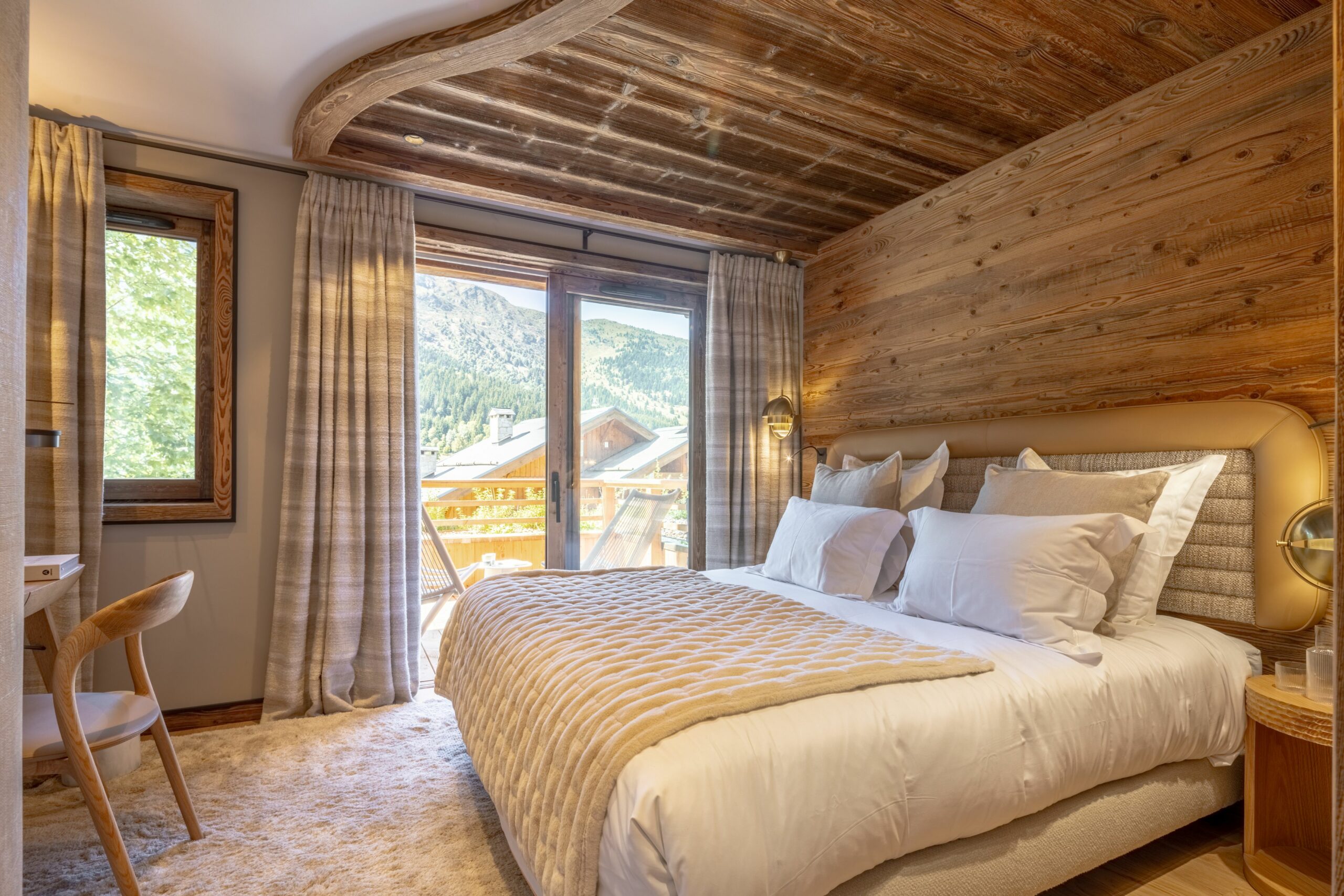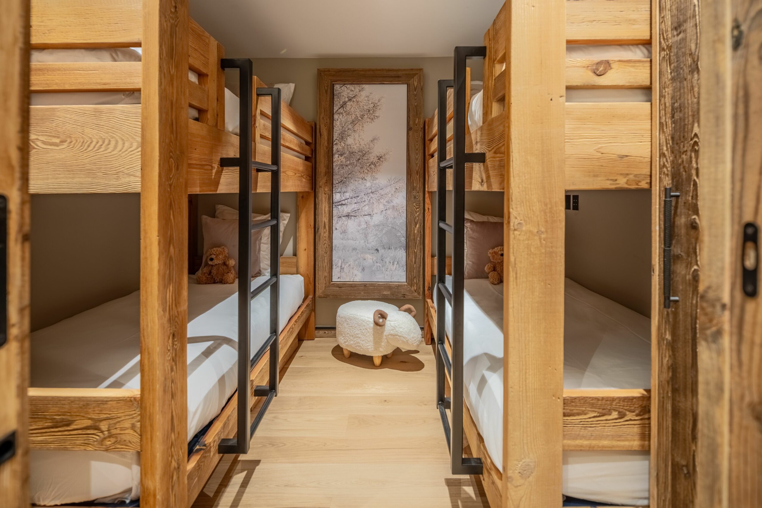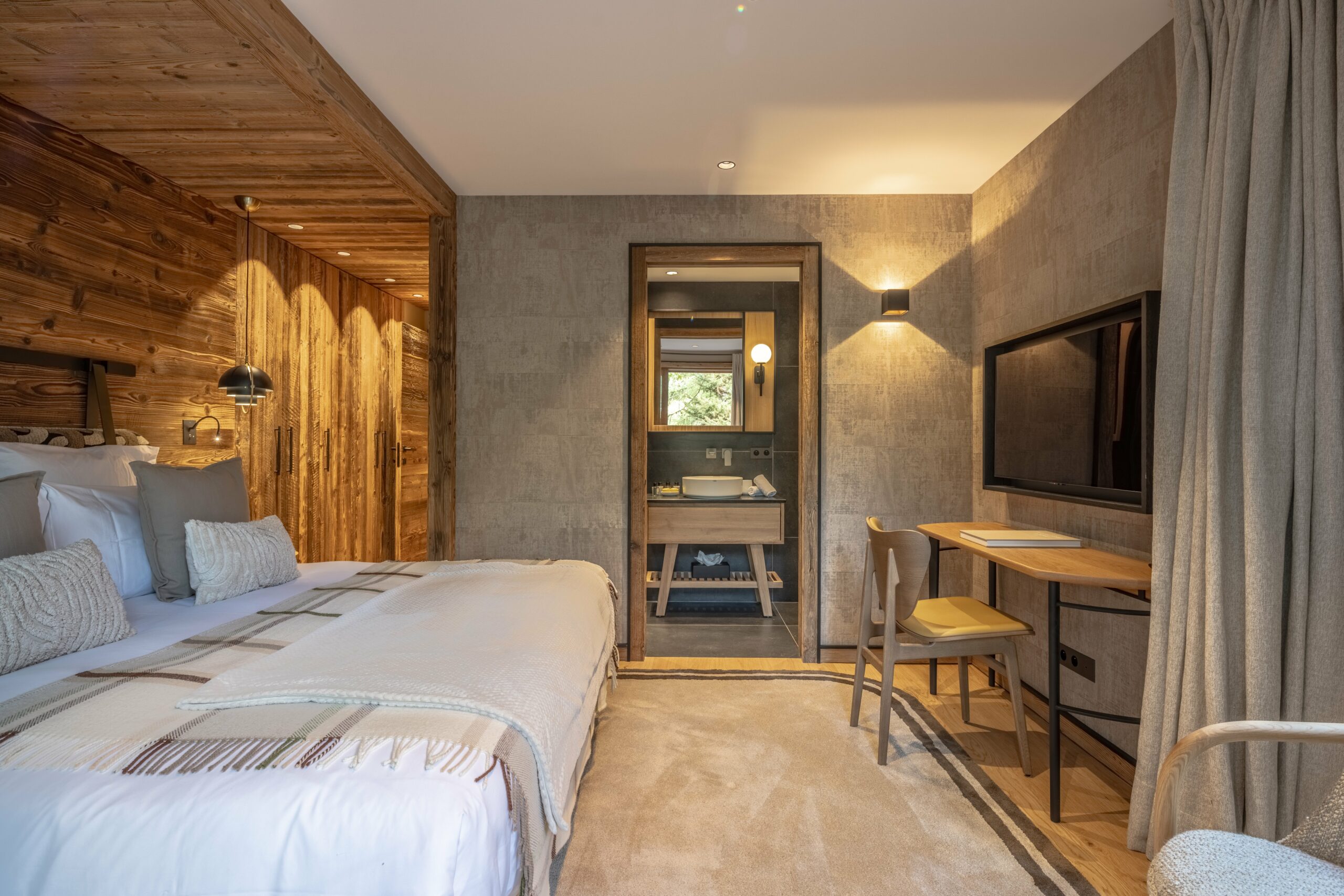 This exquisite five-bedroom residence in Méribel spans across a single expansive floor, meticulously crafted to blend luxury with sociability. Upon entry, a welcoming hallway greets you. A convenient guest washroom is positioned to the right. As you proceed, the left wing unveils an impressive wellness and leisure zone. This area houses a sauna alongside laundry facilities, an intimate cinema space, a well-appointed shared shower room featuring twin basins, and a walk-in shower. The initial trio of bedrooms occupies this section of the residence. First, you'll discover a delightful children's room featuring two sets of bunk beds, perfect for young visitors. Following this is a spacious double bedroom complete with an en-suite shower room, television, desk area, and balcony access. The third bedroom in this wing is another generous double, boasting an en-suite bathroom with both shower and bath facilities, a television, and access to the same balcony. Both chambers open onto a verdant-framed balcony, providing a secluded retreat with distant views of the Méribel ski terrain. The residence features wooden panelling throughout, harmoniously blending traditional alpine charm with contemporary, sophisticated interiors. Apartment Serene's focal point is the open-concept living space, incorporating dining and kitchen areas, creating an ideal gathering hub. The living area, adorned with tasteful and welcoming décor, serves as the perfect sanctuary after a day on the slopes. Unwind before the modern fireplace, which provides both warmth and ambiance, before sharing a meal with family at the dining table. The contemporary kitchen, centred around an island, comes fully equipped for preparing everything from elaborate dinners to simple family breakfasts. Floor-length French doors bathe the space in natural light and lead to the balcony, where a sheltered hot tub nestles among greenery, ensuring both comfort and seclusion. It's the ideal spot for après-ski relaxation and muscle recovery. Beyond the kitchen, a corridor leads to the remaining sleeping quarters. The primary suite, positioned at the hallway's end, features a left-hand entrance into a generous double bedroom, decorated with serene and inviting furnishings, offering the perfect relaxation space. This room includes a practical desk area and television, with access to the shared balcony. Awaken to stunning mountain views overlooking the Méribel ski area, your future skiing destination. Directly opposite this room lies the spacious primary bathroom, complete with twin basins and a walk-in shower. Adjacent to the primary bedroom sits another elegant double room featuring a television, en-suite shower facilities, and access to the shared balcony. This charming and distinctive hideaway offers the ultimate skiing retreat in Méribel. Situated perfectly in Méribel’s bustling centre, the property lies just moments from local boutiques and eateries, whilst being a mere 10-minute journey from the main lift station. This centrally positioned haven is ideal for ski enthusiasts.BEDROOM & BATHROOM LAYOUT
