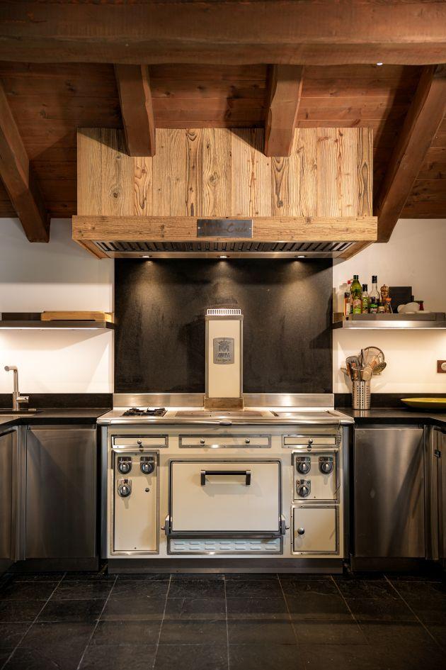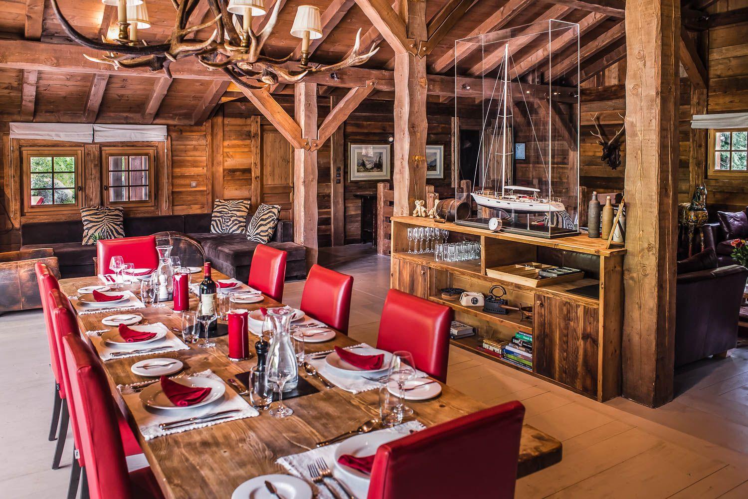 This luxurious chalet exudes classic alpine elegance in buckets while providing a high-end finish and modern touches. The living area is an expansive open plan area, with high vaulted ceilings and large French windows overlooking the garden and the woods beyond. There are two spacious seating areas that offer enough space for the party to relax and appreciate the warmth of the roaring fireplace. The dining area is situated in front of wide windows and balconies, offering plenty of natural light. The completely fitted kitchen can be shielded from this room with sliding doors for a more intimate environment.