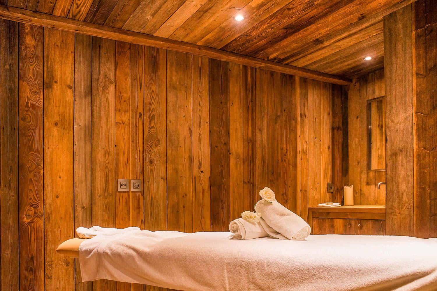 Also located on this floor, there is a spa area with a large indoor Jacuzzi spa, a steam room and a sauna. For those looking to enjoy a massage or beauty treatment during their stay, there is a separate massage room. Out on the broad terrace, there is a hot tub where you can lounge and soak in the views. In the summer months, you can also enjoy the outdoor pool (not available in winter).