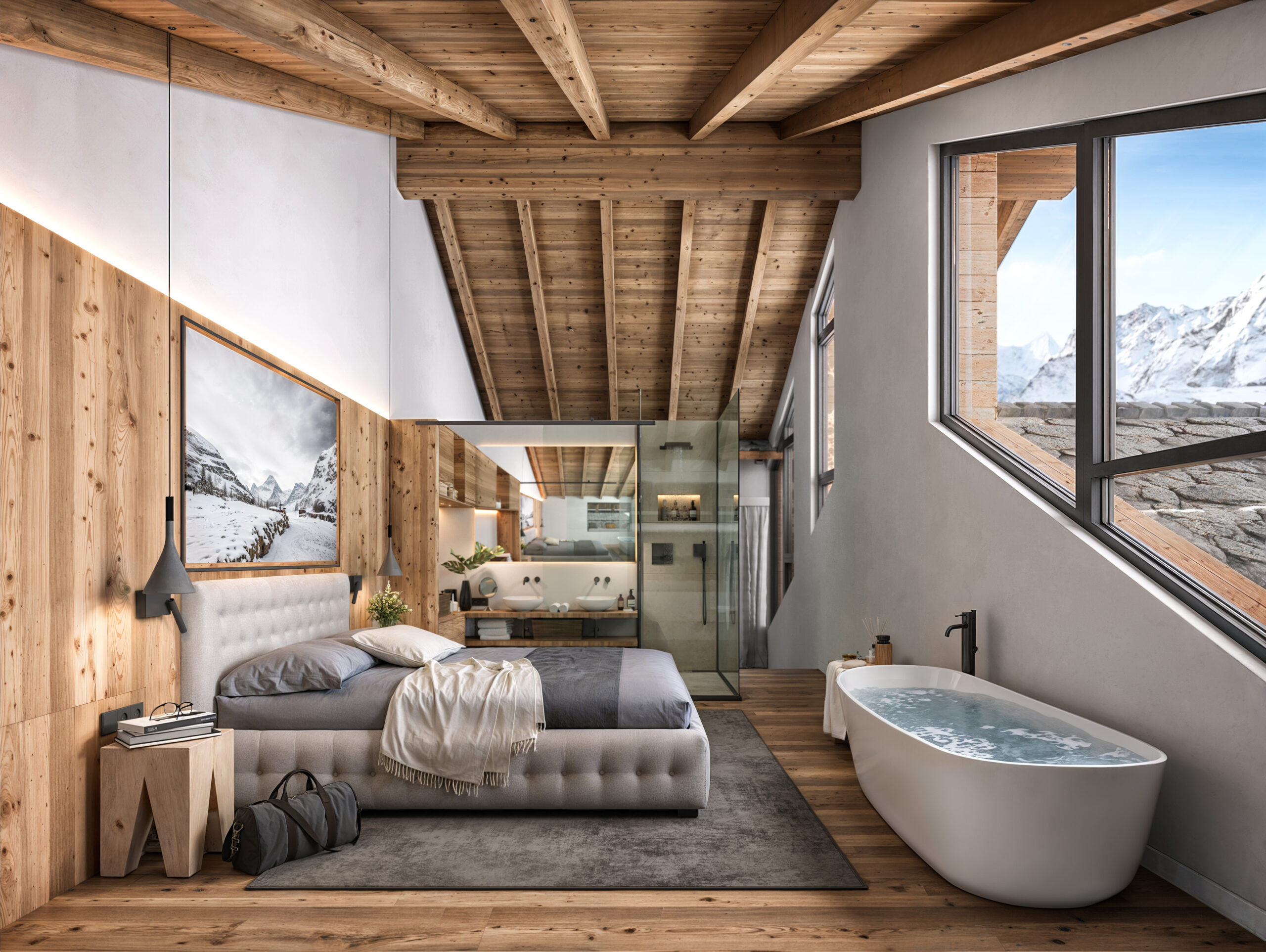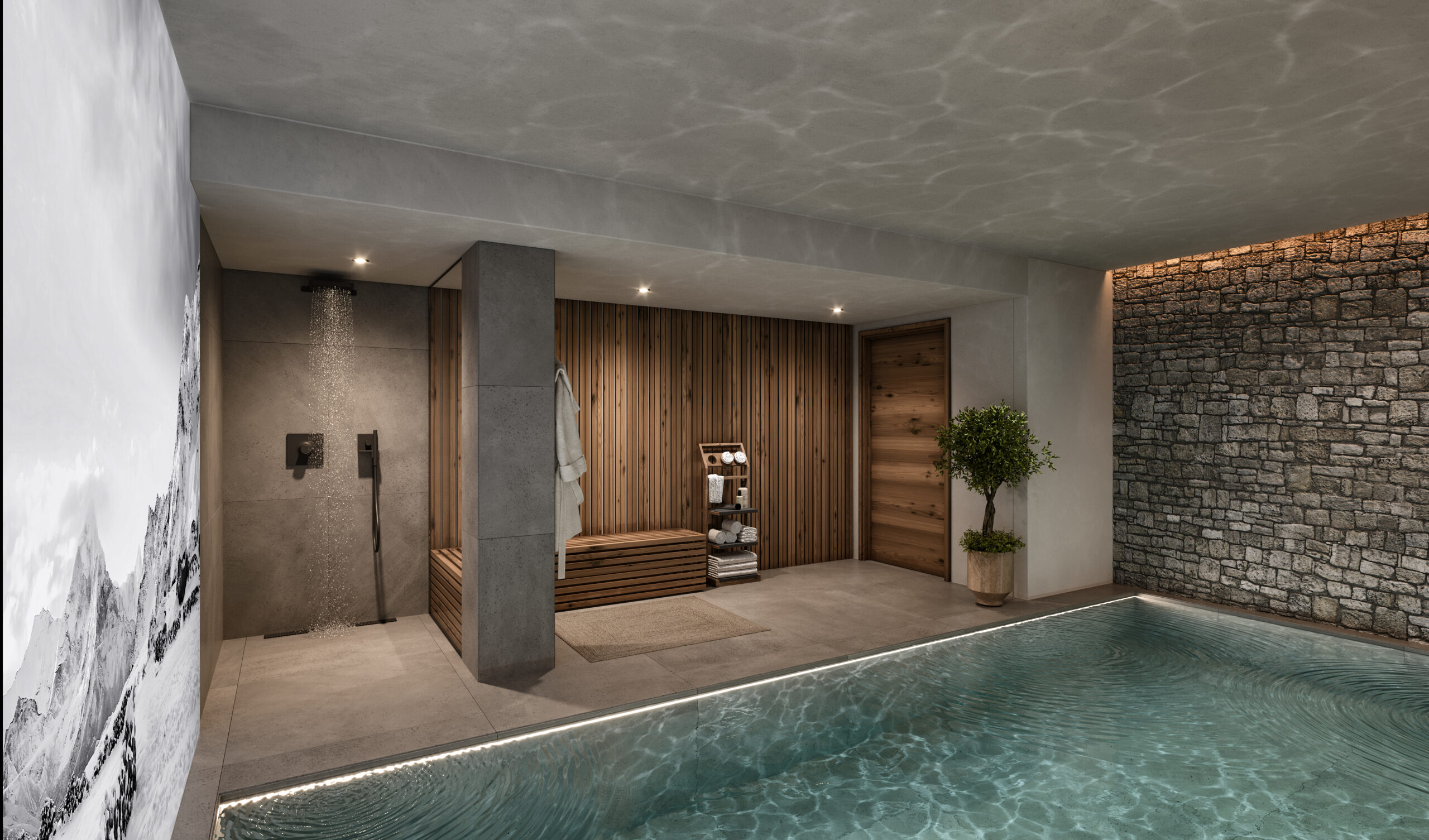 Chalet Breithorn in Cervinia is an exquisite luxury mountain retreat accommodating up to 12 guests, offering an exceptional location in the resort's centre alongside premium amenities, including a dedicated spa zone with swimming pool and a private cinema. This remarkable property represents the perfect mountain getaway, showcasing contemporary alpine architecture throughout its communal spaces and 6 double bedrooms. The chalet's primary living space presents an impressive open-concept area arranged around a central fireplace, encompassing lounging zones, dining facilities, kitchen, and bar section. Contemporary alpine timber, dark matte elements, and natural stone combine in sophisticated design, creating a generous space fitted with premium furnishings. The lounge and dining sections sit beneath an elevated, timber-beamed ceiling, featuring floor-to-ceiling windows that welcome abundant natural light. The well-appointed kitchen and elegant bar occupy the rear space, with subtle lighting creating a tranquil ambience. A wraparound balcony extends across these living spaces, offering an ideal spot for morning refreshments while admiring the mountain panorama. The lower floors of Chalet Breithorn house outstanding wellness facilities, establishing this property as an exceptional choice for mountain wellness retreats. A 6m heated indoor pool occupies its own area on the bottom level, while additional spa amenities are located in the wellness zone one floor above. Here, guests can relax in the soothing indoor hot tub, refresh in the authentic Finnish sauna, or enjoy therapeutic treatments in the massage area. Exercise equipment complements the hot tub, sauna, and massage facilities. Adjacent to the wellness zone in Chalet Breithorn, guests discover a cutting-edge cinema room, featuring dual-level luxurious seating and large-screen projection for perfect movie experiences. Chalet Breithorn features 6 double bedroom suites, accommodating a total of 12 guests. Each bedroom bears the name of a prominent mountain peak and showcases refined alpine décor. A master suite occupies an exclusive floor at the chalet's summit, complete with standalone bath, open-plan shower facility, and dedicated office space. The remaining bedrooms provide exterior access to either terraces or balconies and feature deluxe en-suite facilities. For added comfort, Chalet Breithorn provides a dedicated ski room, laundry amenities, garage parking, and lift access across all four floors. Rates include exclusive chalet use for up to 12 guests and incorporate full catering service, in-resort driver assistance and daily housekeeping. Please Note: Chalet Breithorn is currently under construction and as such the image gallery is composed of CGI renders. The gallery will be updated upon completion of construction and a photoshoot taking place.