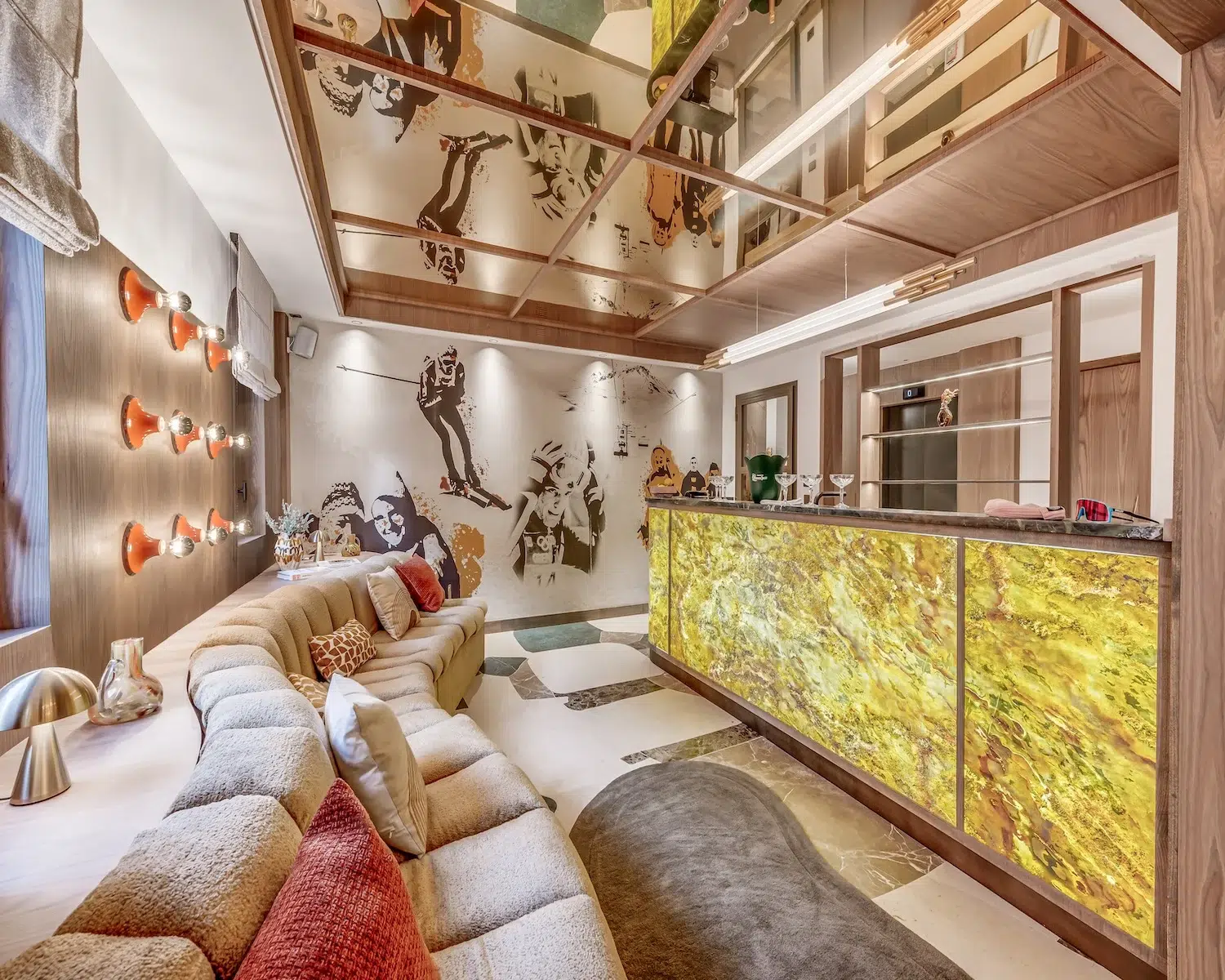 The ground level welcomes you with a well-appointed ski room, featuring heated boot warmers and abundant storage facilities. A sophisticated bar space sits nearby, offering the ideal spot for post-skiing refreshments.