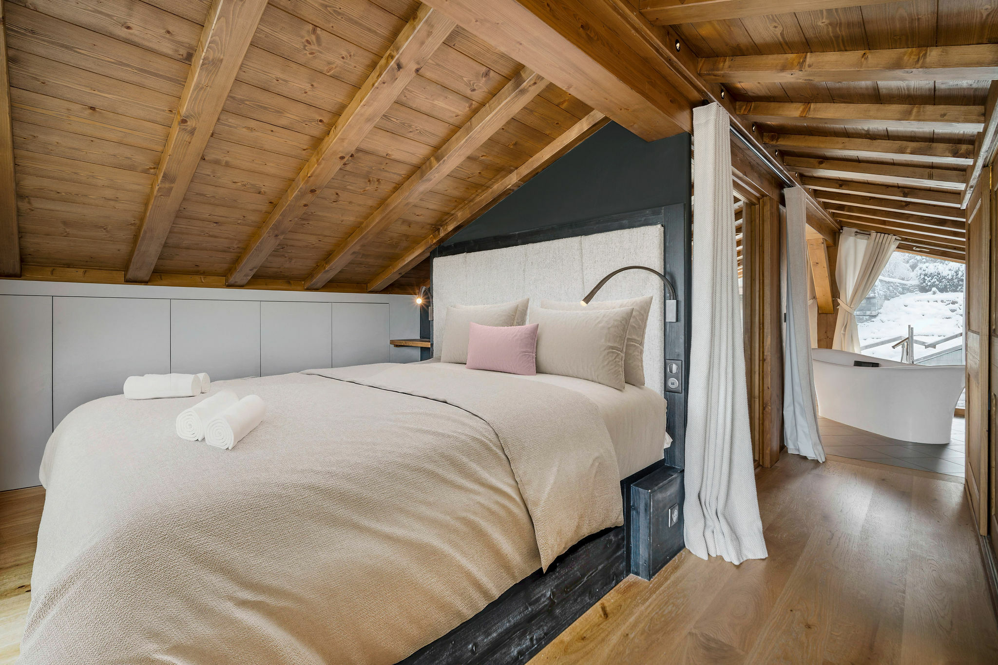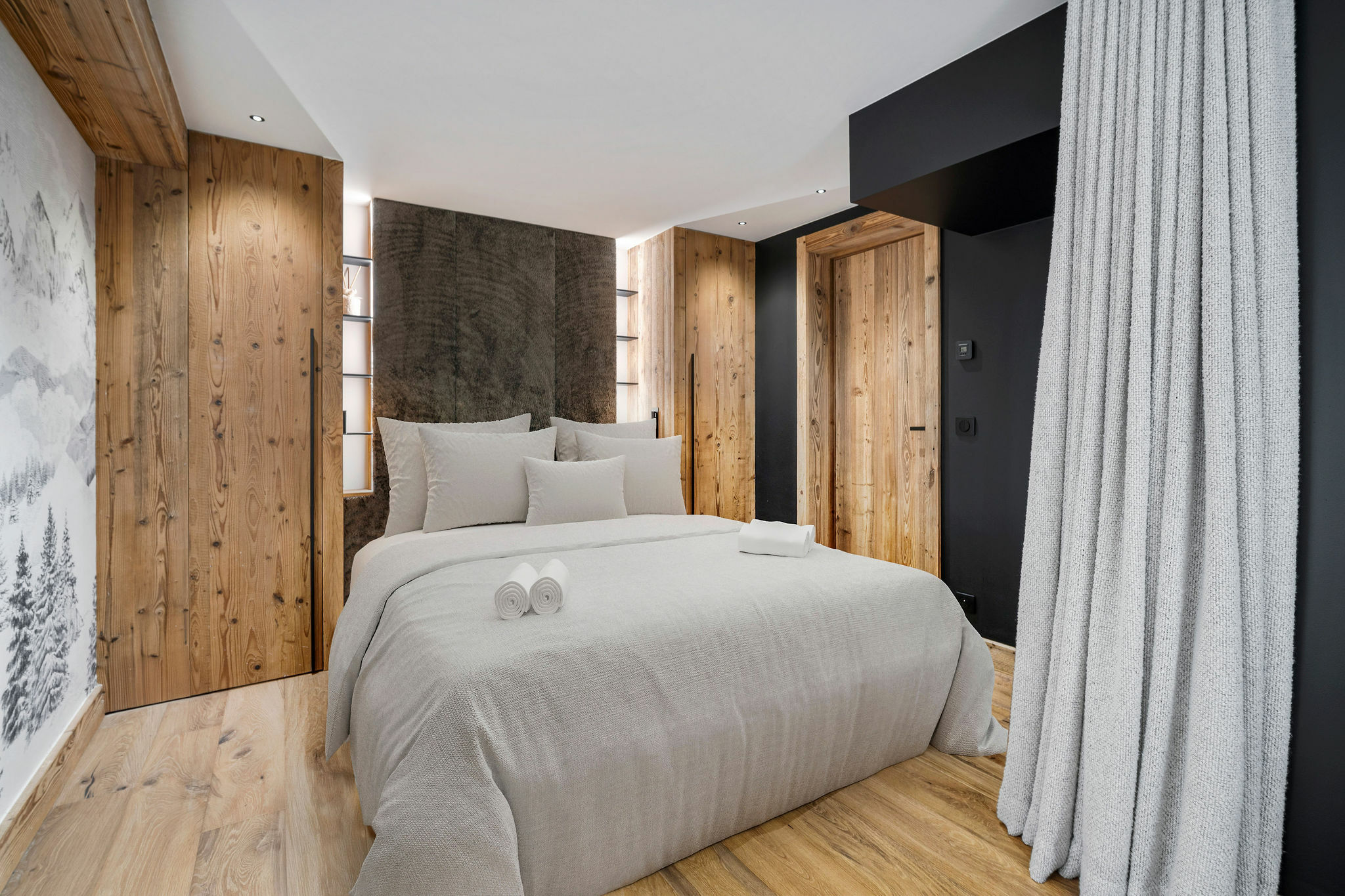 Chalet Grâce Dieu occupies an enviable location in the sought-after Cospillot district of Courchevel 1850. Within a brief stroll of the main lift station, residents can readily access the Verdons and Jardin Alpin cable cars, offering direct connections to the extensive Three Valleys ski domain. The vibrant village centre, featuring upscale shops and gourmet restaurants, is mere steps away, whilst the chalet serves as a tranquil, modern sanctuary with magnificent alpine vistas. The principal living space is situated on the second floor, where cathedral ceilings and vast windows bathe the interior in daylight. The sitting room commands spectacular mountain views, features a television, and houses a welcoming hearth. The connected dining space extends into a modern, fully-appointed kitchen, perfect for casual evenings and convivial gatherings. Distributed across five double bedrooms, the chalet readily houses ten guests. The master bedroom occupies the uppermost floor beneath timber beams, boasting broad windows, a dressing space, and a luxurious en-suite bathroom. Three additional en-suite doubles reside on the first floor, whilst the final double bedroom and separate shower facility are positioned at ground level. Post-skiing, guests may unwind in the private wellness area, featuring a heated indoor swimming pool and sauna overlooking the water. Supplementary facilities include a ski room with boot warmers and a utility room, ensuring all comforts are addressed.BEDROOM & BATHROOM LAYOUT