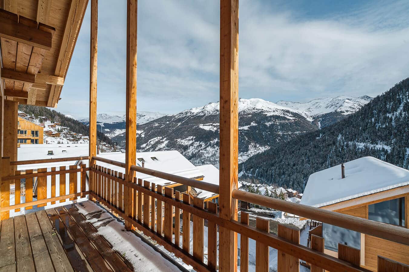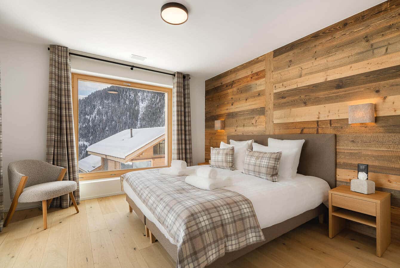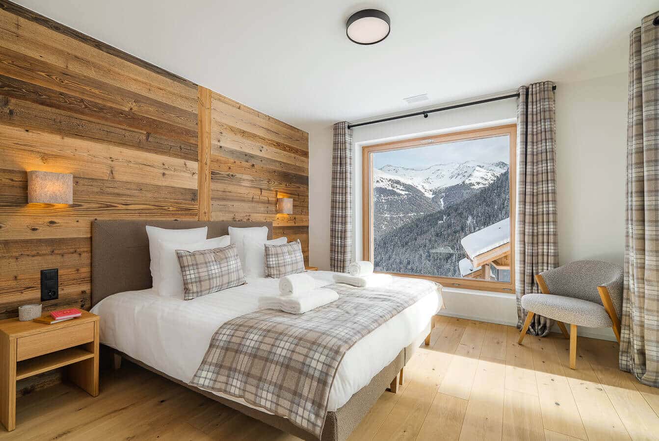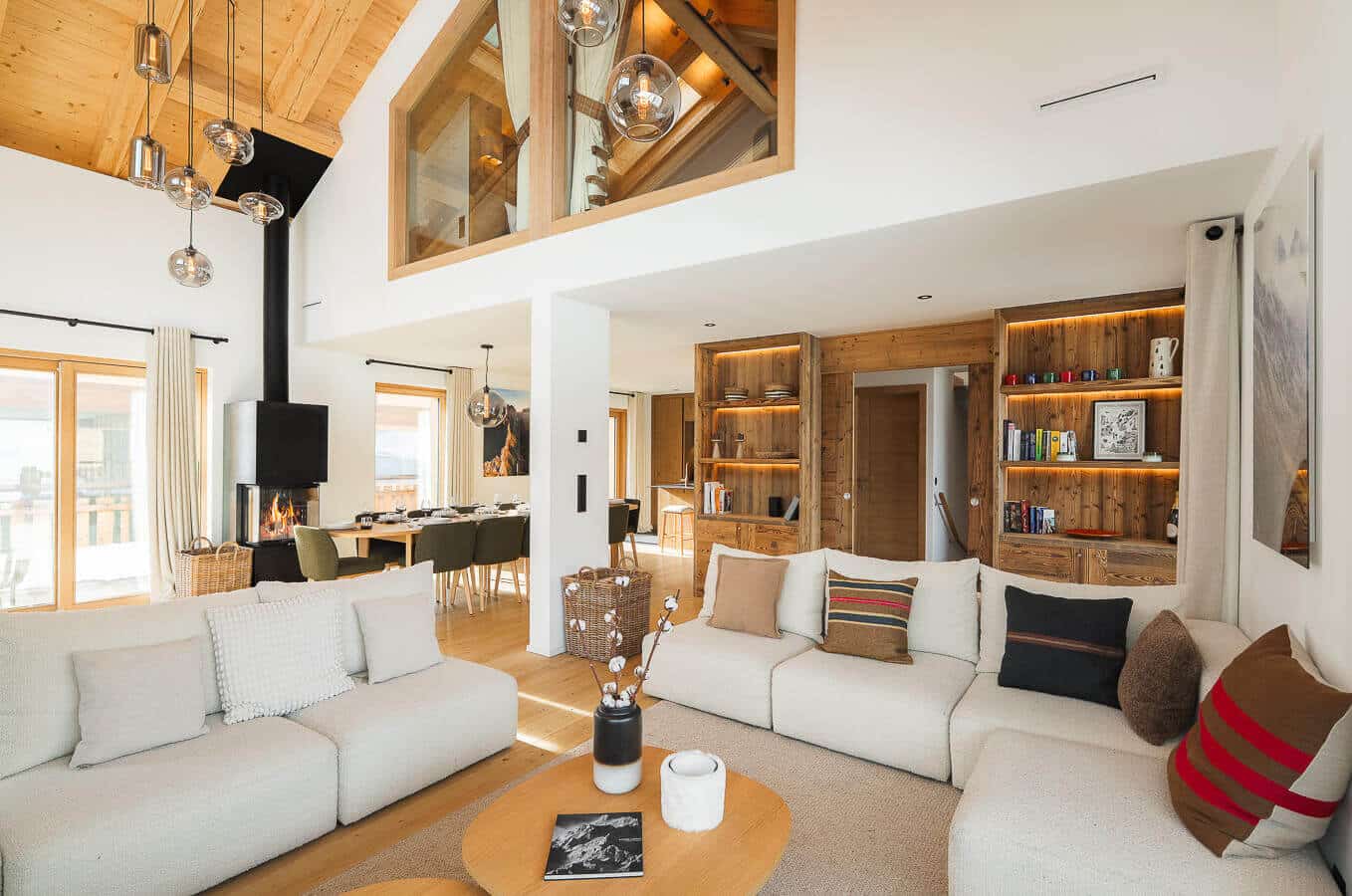 Each residence blends traditional alpine architecture — wood, stone, and large panoramic windows — with contemporary design and top-of-the-line amenities.