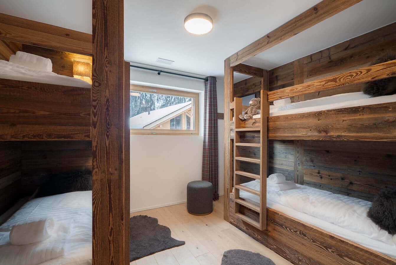 Chalet H is an individual chalet of 209 m2 over four floors. The chalet sleeps up to 12 guests in 5 double bedrooms.