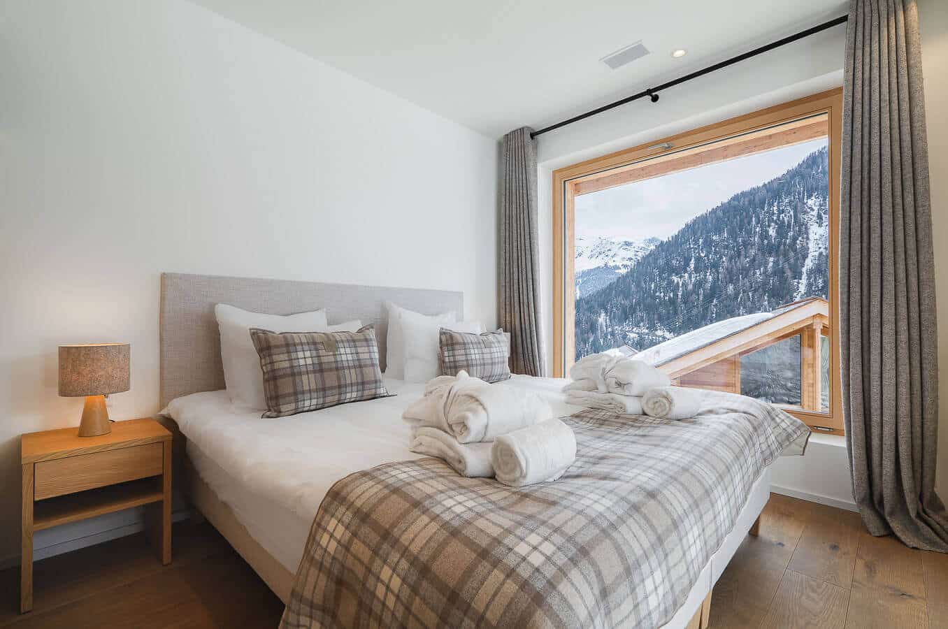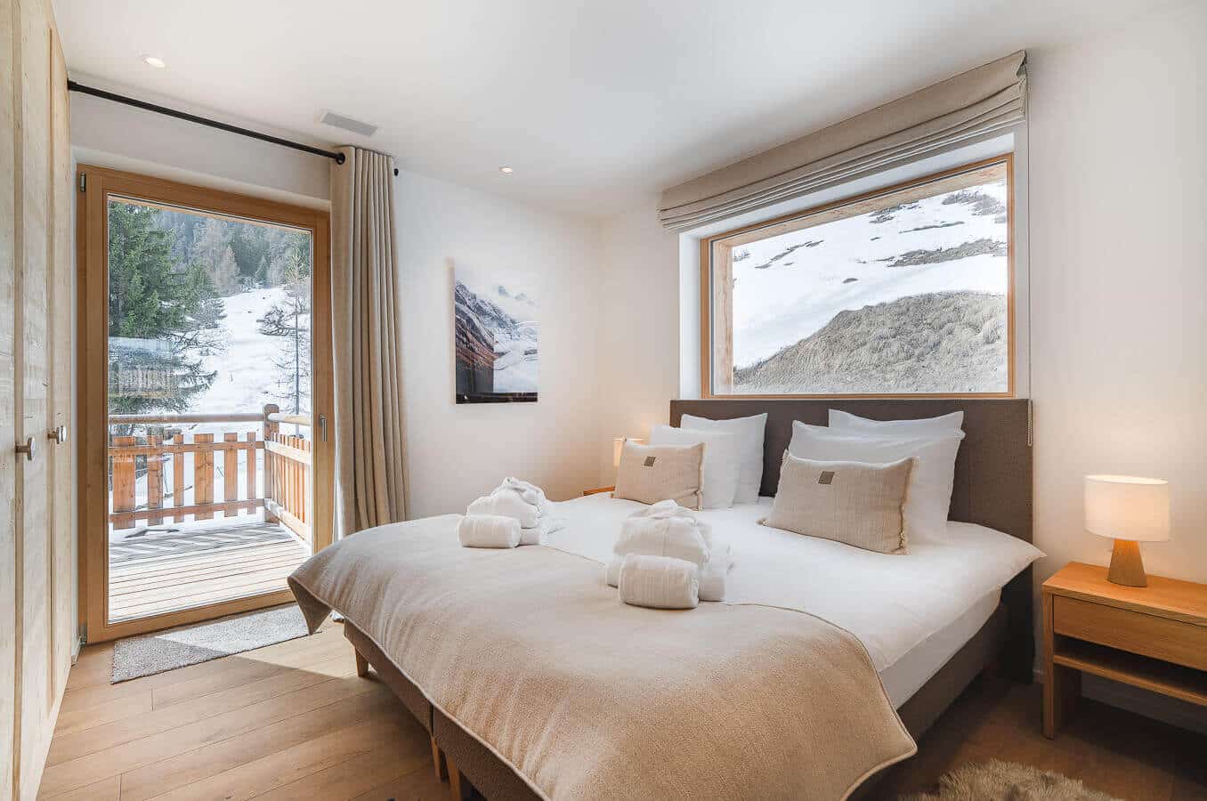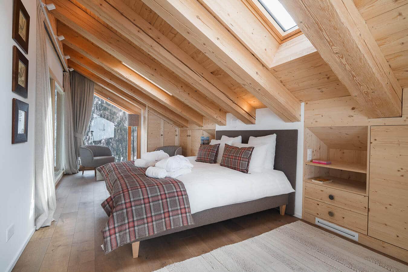 Each residence blends traditional alpine architecture — wood, stone, and large panoramic windows — with contemporary design and top-of-the-line amenities.