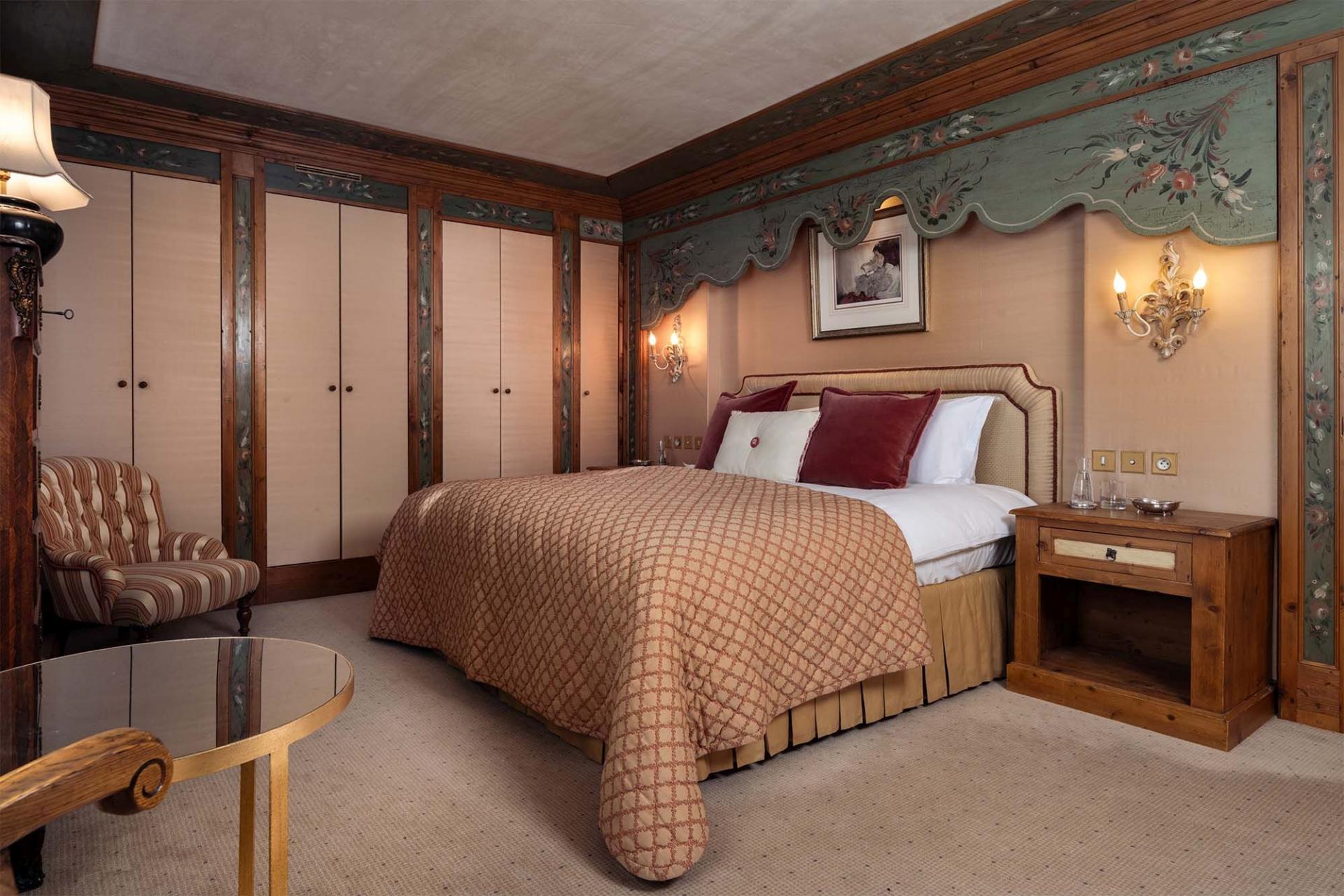 The chalet accommodates up to 12 adults and 2 children across 6 en-suite bedrooms and a master suite. Each bedroom exhibits unique characteristics, ranging from refined, vintage aesthetics to sleek, modern designs. The master bedroom boasts its own private sitting area with fireplace and an exclusive balcony. Every room features an en-suite bath or shower room. One bedroom contains a small double bed, ideal for children.