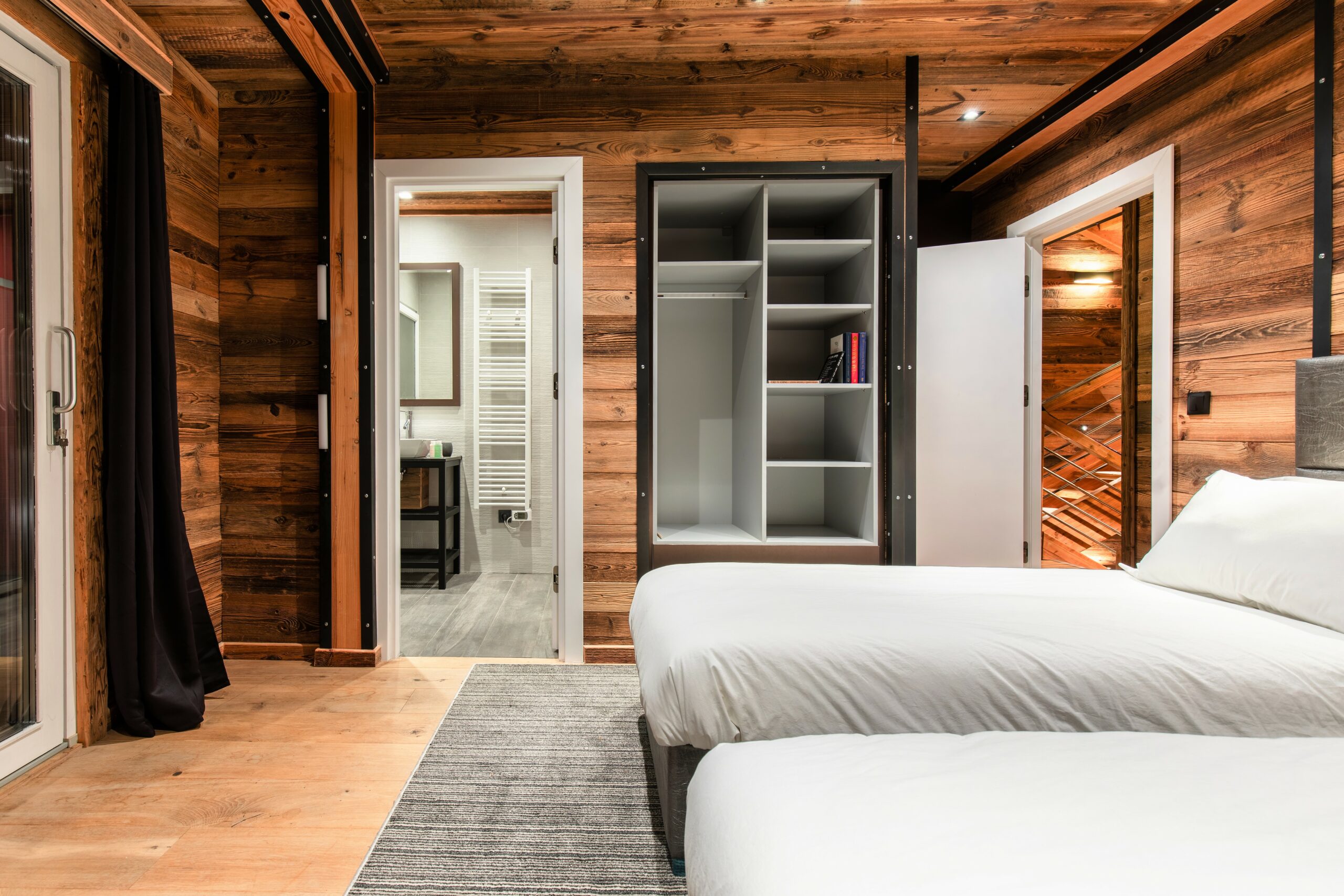 Chalet Merveilles offers 6 en-suite bedrooms, 5 of which can be configured as twin or double rooms for maximum flexibility. A dedicated children’s bedroom on the top floor includes a playful ball pit and chill-out space, accommodating up to 3 children with its own en-suite shower room.