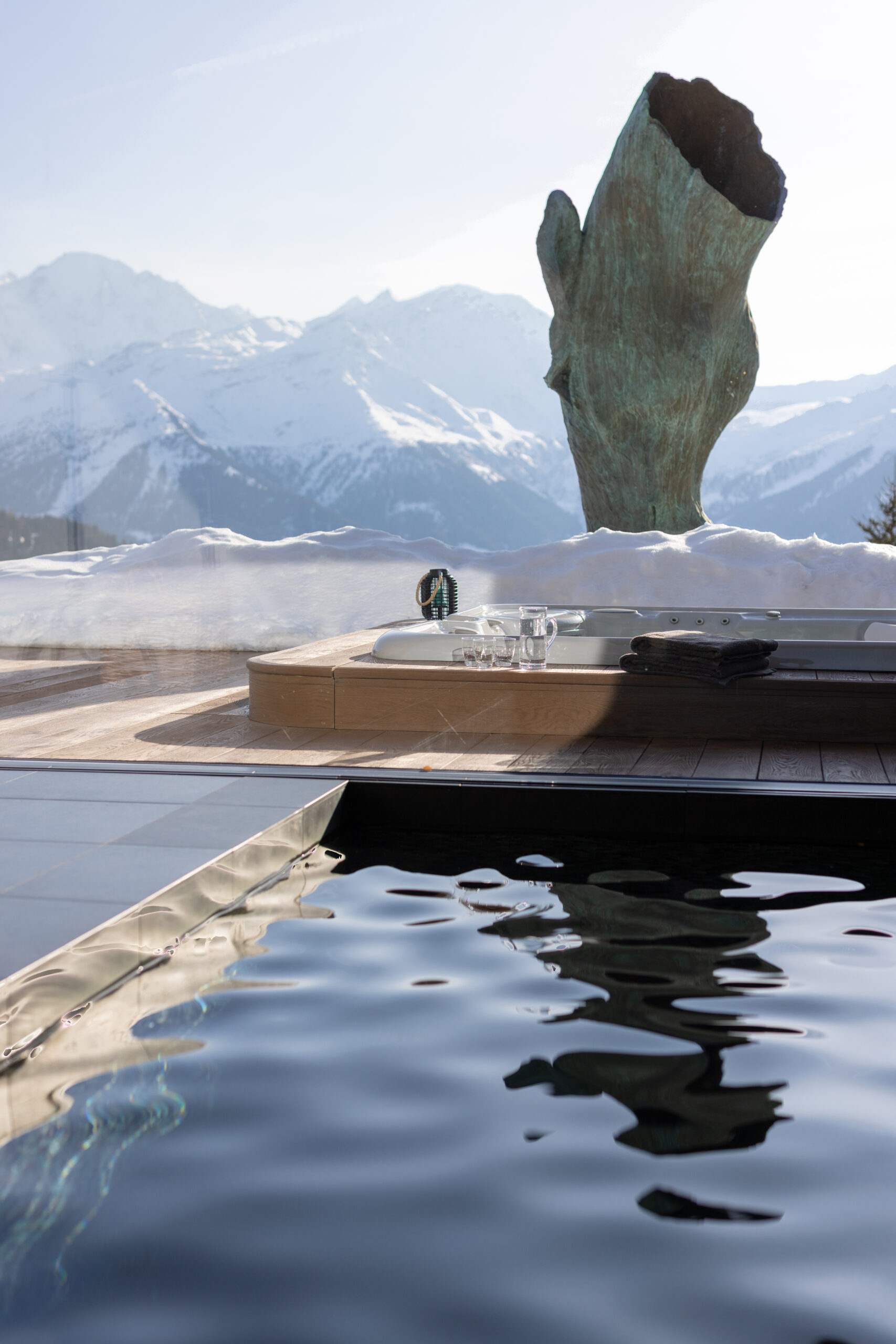 A total of 12 persons can sleep in this incredible 1000 m2 chalet on four fabulous luxury levels. Relax in six en-suite bedrooms of the Chalet Norte, enjoy your private pool spa, or lounge in a beautiful space. In a magnificent place in the dreamy heights of Verbier, the chalet provides an unrivalled view from the village below and the breathtaking mountain scenery.