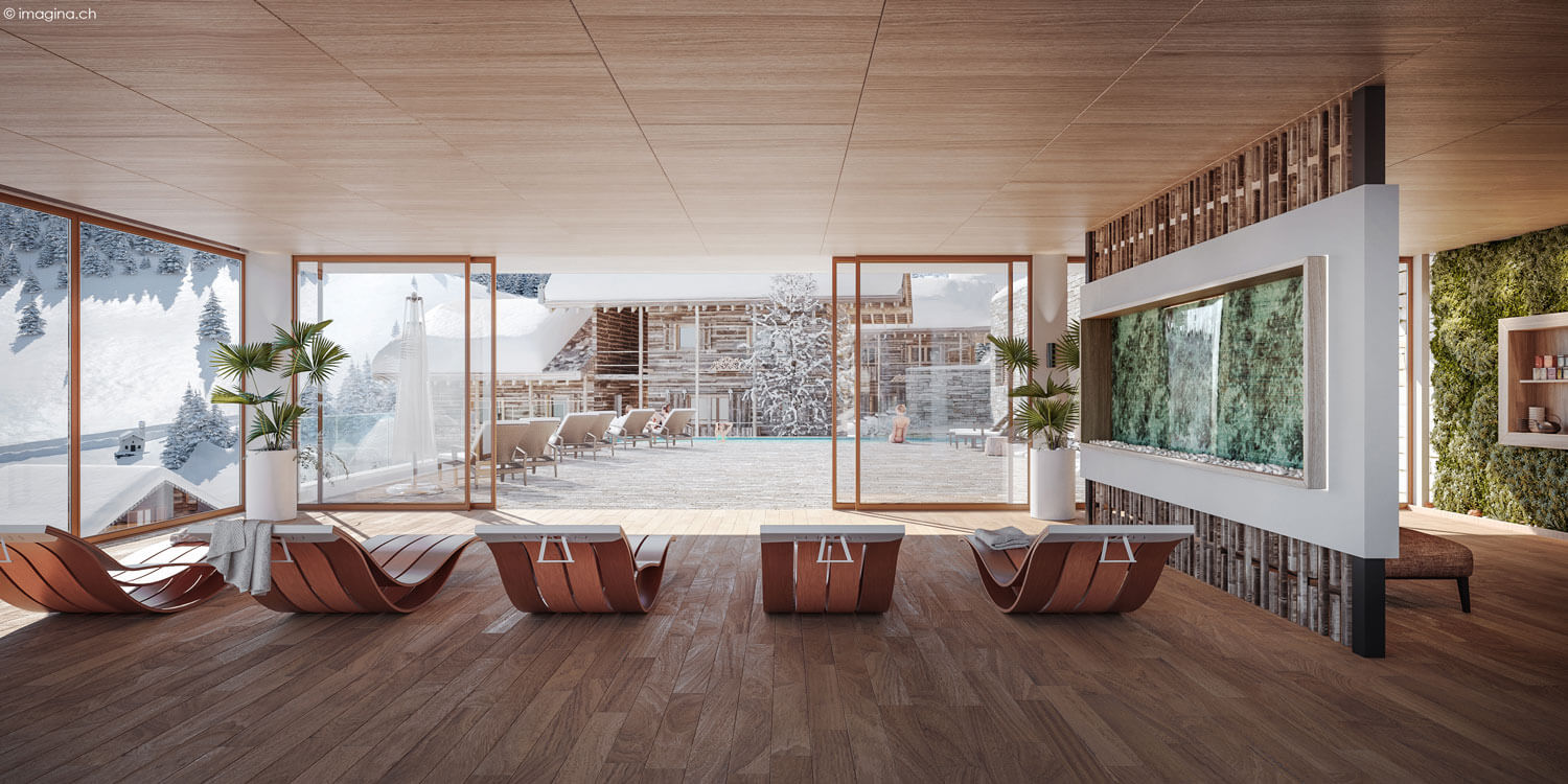 The guest of Chalet P have access to the 700 m² Guernerés Spa is a sanctuary of relaxation, offering shared access to an indoor-outdoor heated pool, sauna, hammam, sensory showers, and a state-of-the-art fitness area overlooking the Alps.