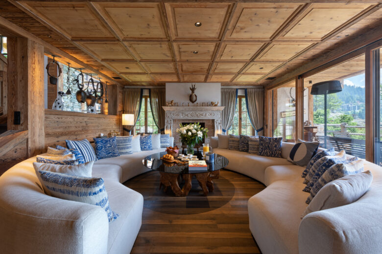 Chalet Peter Pan is an opulent mountain retreat boasting a private wellness area with a swimming pool, a dedicated cinema space, and sophisticated mountain-inspired décor. Located a brief stroll from Place Centrale, Chalet Peter Pan stands as one of Verbier's finest private dwellings. Set across four levels, the property comfortably houses up to 10 + 4 guests within six sophisticated bedrooms. The chalet creates an impressive initial impact with its towering entrance hall showcasing expansive steel-framed windows stretching from floor to ceiling. Steps descend to the primary living area, thoughtfully crafted for social gatherings. The space features a vast sitting room centred around a fireplace, an elegant dining section with a second hearth, and a comprehensive kitchen that can be separated from the dining space on one side. This floor also includes an en-suite double bedroom and a Guest WC.