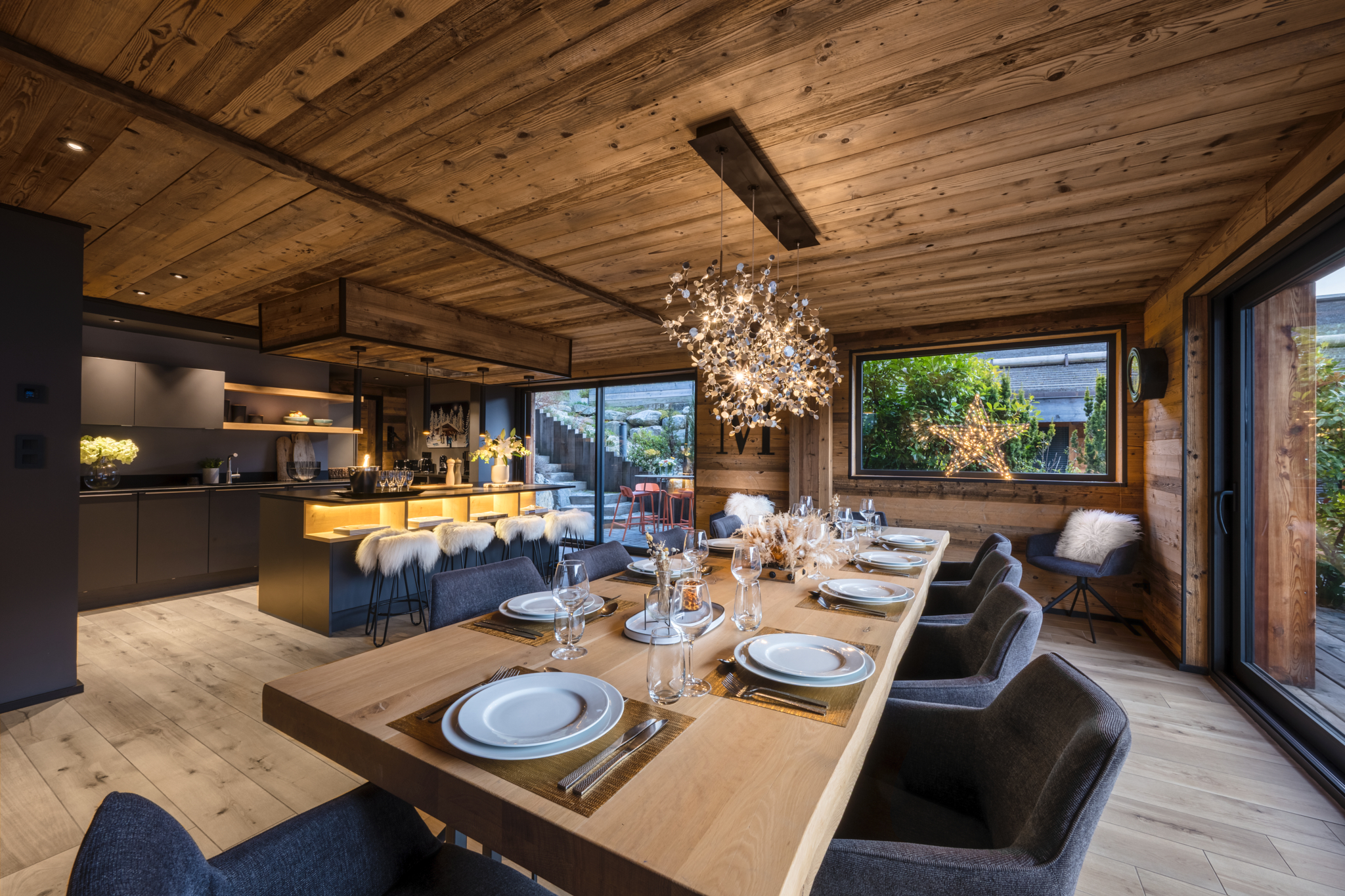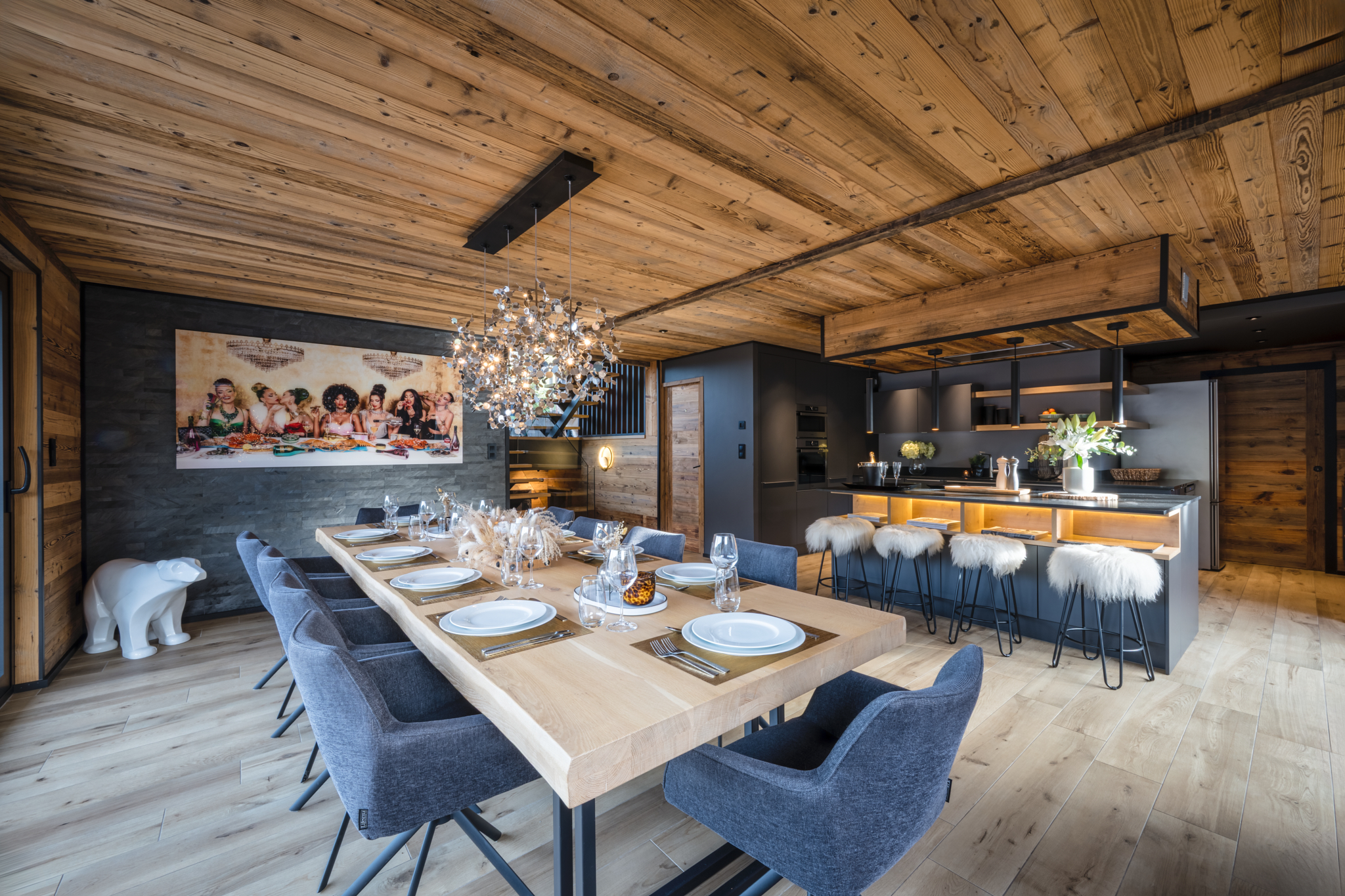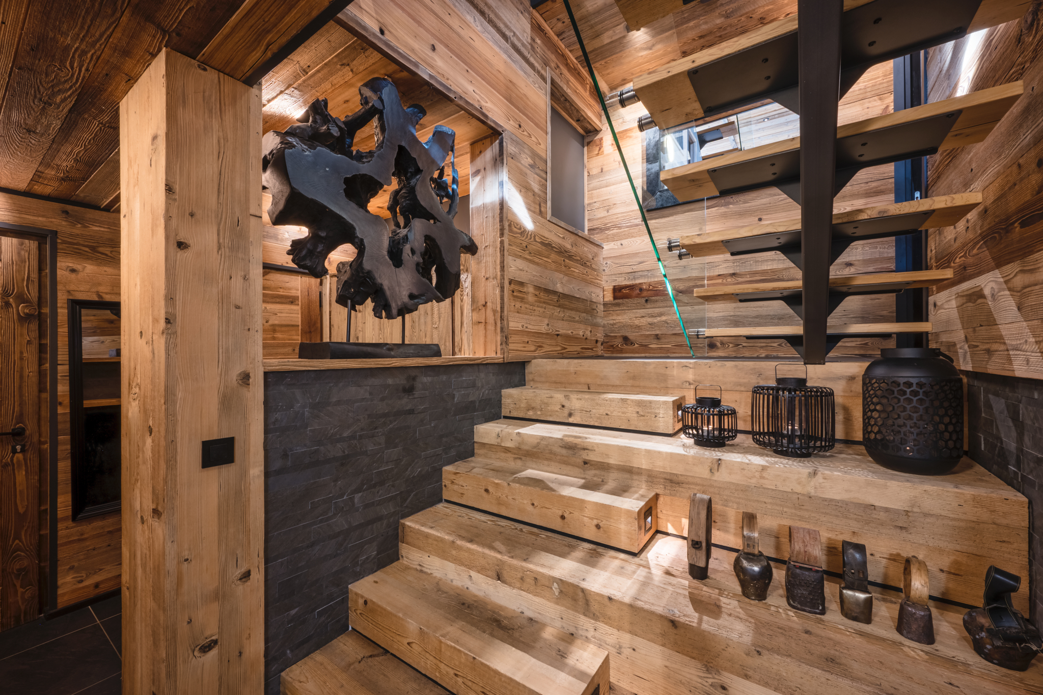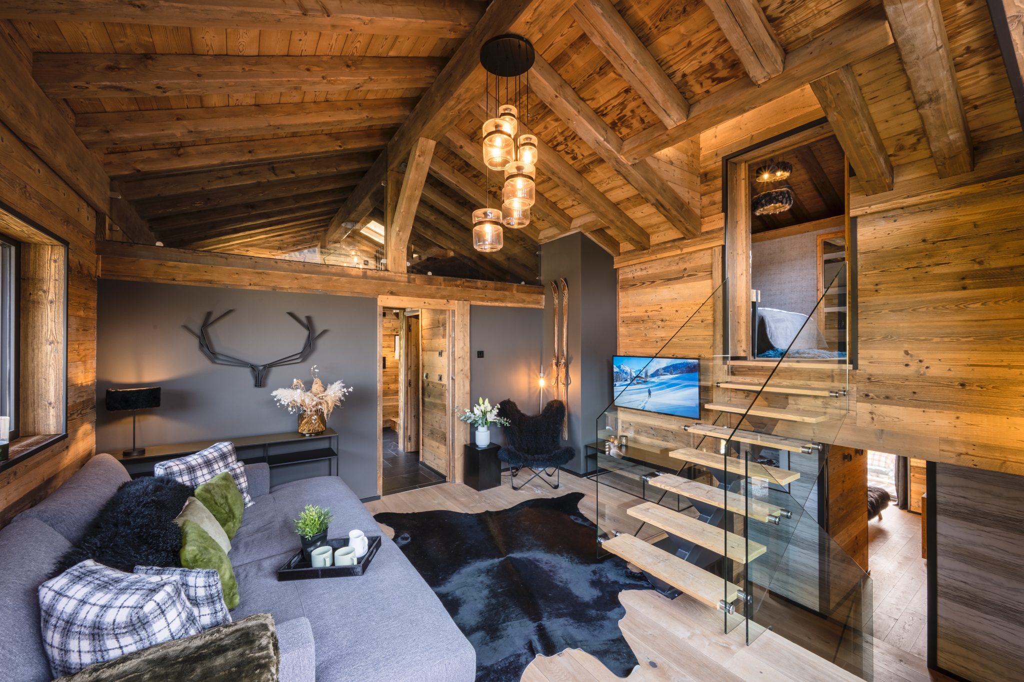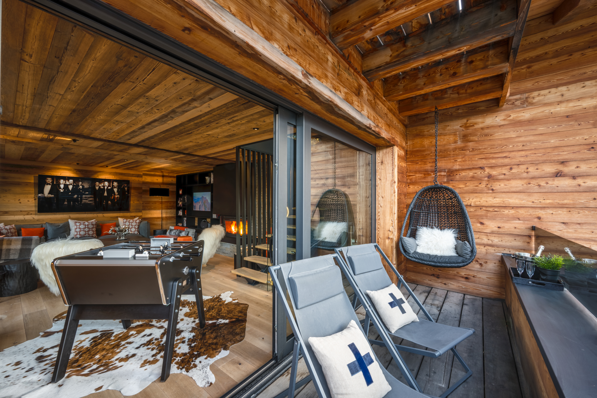 Chalet Sandjeman is a magnificent luxury ski chalet on the outskirts of the forest, approximately a 12-minute walk from Morzine's village center. The chalet has a warm and calm environment, with a modern main living space on the second floor that is ideal for socialising. The open-plan kitchen and living area are at the core of this chalet, which spans four stories from the main centre stunning glass staircase. The first living area has a collection of entertaining games and a football table for enjoyable nights in the chalet. This luxurious ski chalet includes five bedrooms, with the master bedroom on the top floor offering magnificent mountain views. All of the bedrooms have en-suite bathrooms as well as a terrace or balcony to take advantage of the spectacular environment. The first level has a great kids' hangout area with a TV room and four single beds. The remaining three double bedrooms are on the third level and have floor-to-ceiling windows. After a hard day on the slopes, there is a ski and boot storage room with heated boot racks, and this roomy chalet provides plenty of space to unwind. The hot tub with views of Pointe de Nyon is a wonderful highlight, and it's the ideal location to unwind after a day of skiing. Similarly, the spa and wellness room on the third floor is accessible via a concealed door. On this level, wide floor-to-ceiling windows provide the second living area with outstanding views, making it the ideal location for après ski.