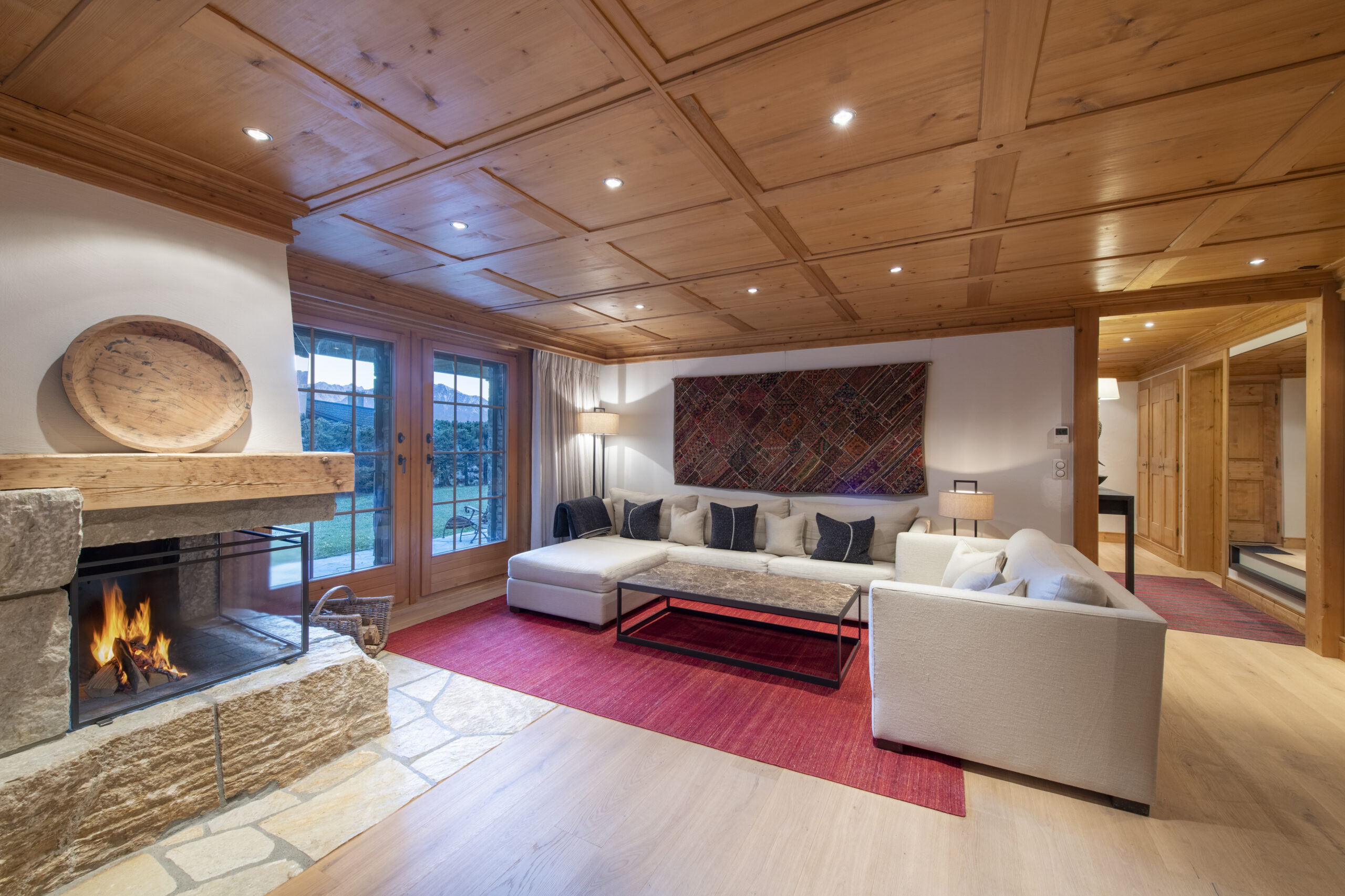 The seamless flow between the living, dining, and kitchen areas ensures a convivial and luxurious alpine living experience.
