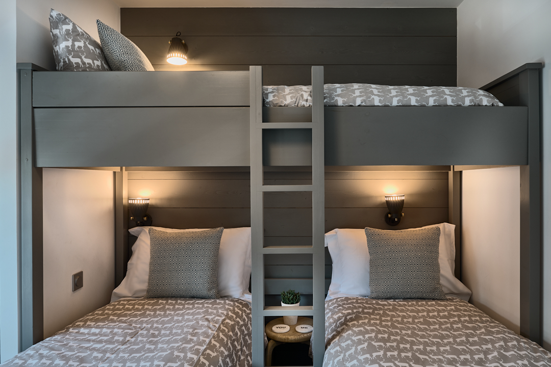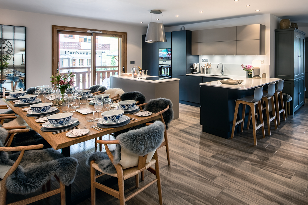 Ideally located in the centre of Morzine, Apartment Les Abeilles is a high-end five-bedroom apartment designed for discerning travellers seeking a refined alpine escape. Combining contemporary architecture with elegant mountain styling, this spacious property accommodates up to 14 adults and 1 child, making it perfectly suited for large families or groups. The apartment welcomes guests into a generous open-plan living space, flooded with natural light thanks to large floor-to-ceiling windows. Overlooking the surrounding alpine scenery, this inviting area is ideal for unwinding after a day on the slopes of the Portes du Soleil. Relax on the expansive L-shaped sofa, enjoy quiet moments with a book, or gather with friends for a cosy evening. The living area opens onto a spacious balcony, fully furnished for outdoor living—perfect for sunset apéritifs with panoramic mountain views. A stylish dining area provides the perfect setting for shared meals, whether it’s a relaxed breakfast or a convivial dinner after skiing. The space benefits from stunning views over the Pléney and Nantaux peaks, enhancing the alpine experience. The modern, fully equipped kitchen allows for complete flexibility during your stay. Guests can prepare meals independently or opt for a premium service with private chef or gourmet meal deliveries available upon request. The apartment features five thoughtfully designed bedrooms, combining comfort, functionality, and contemporary alpine décor. The layout is ideal for mixed groups, offering both privacy and practicality. Family-friendly options include bunk bed arrangements suitable for both children and adults, ensuring optimal use of space without compromising comfort. To enhance your ski holiday in Morzine, Les Abeilles offers a range of high-end amenities, such a private ski room with boot warmers, laundry facilities, underground parking for two vehicles and a spacious balcony with outdoor seating. Every detail is designed to provide a seamless and comfortable alpine stay.