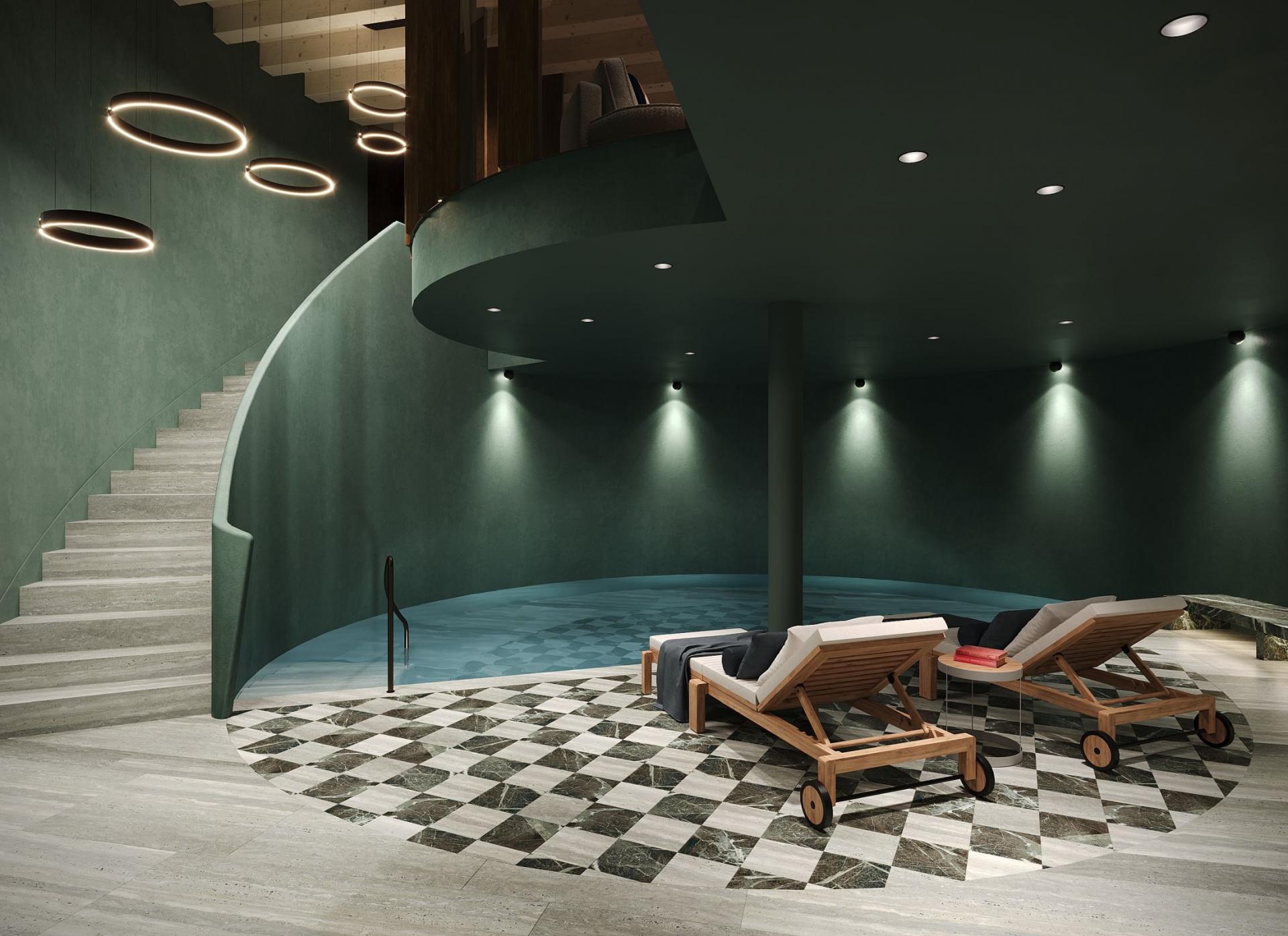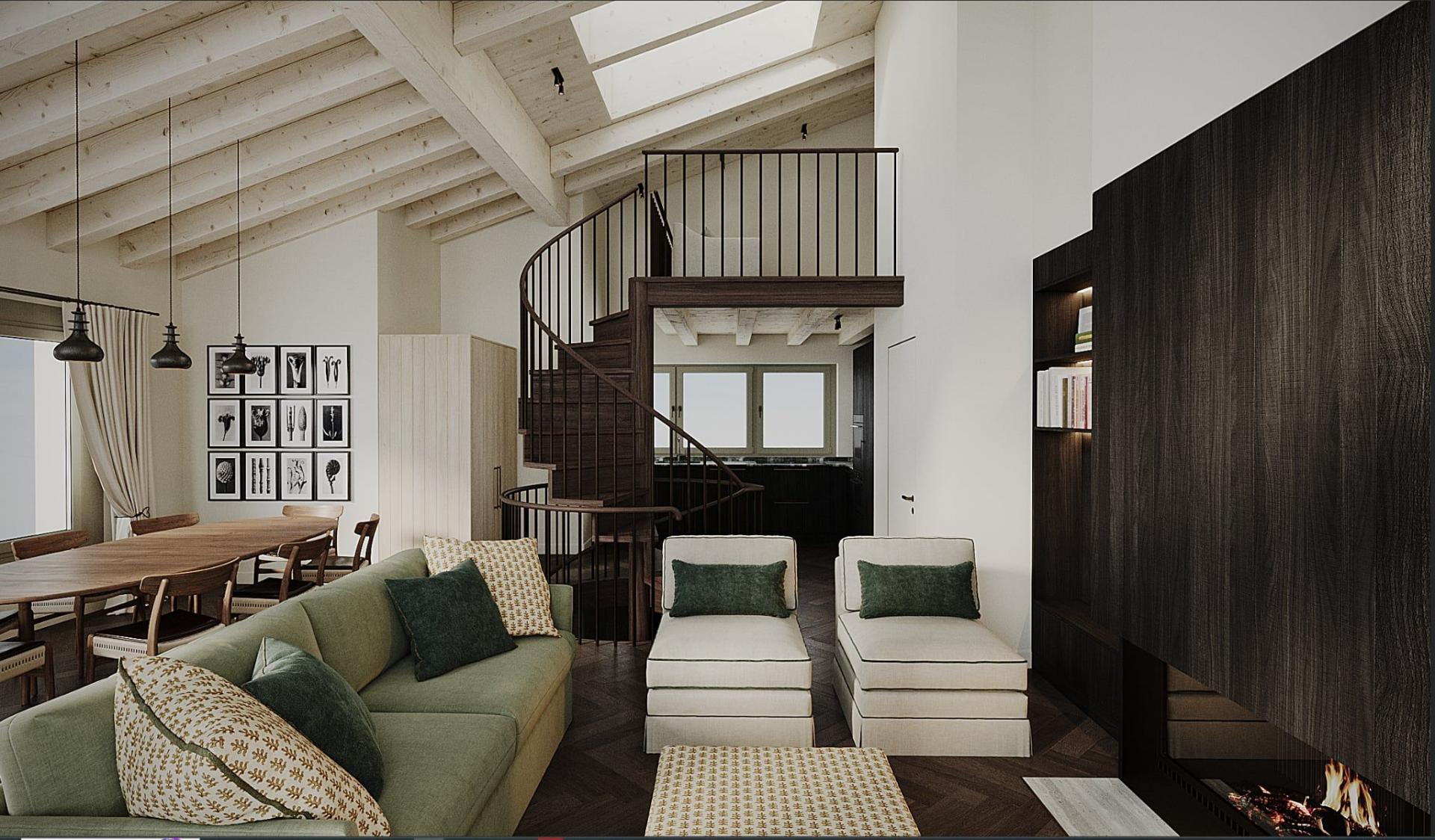 Situated in Zermatt, Lyskamm Lodge offers a modern luxury apartment in an excellent position near the gondola, presenting groups of 8-9 guests an outstanding choice for their next premium ski holiday to Zermatt. The property features elegant living areas and four luxurious double/twin bedrooms, alongside access to a shared wellness centre and spa featuring an indoor swimming pool - a distinctive amenity among Zermatt properties. The apartment's primary living space occupies the entire third floor, comprising an open-concept living room, dining area, and kitchen. The spacious living area features elevated, angular wooden ceilings and boasts superior furnishings throughout. Plush sofa seating is positioned next to a sophisticated feature fireplace, while an elegant wooden dining section with space for all lodge guests extends from the lounge space. The well-appointed kitchen, situated on the opposite side of the central spiral staircase, comes complete with all necessary cooking facilities. A spacious balcony extends from the living and dining space of Lyskamm Lodge, offering stunning Matterhorn vistas and an ideal location for enjoying morning beverages in the invigorating mountain atmosphere. Located above the main living area, a snug mezzanine TV room provides a charming space where several group members can relax and enjoy film screenings. Lyskamm Lodge accommodates 8-9 guests across four double bedrooms and a mezzanine sofa bed. The double bedrooms are distributed equally between the bottom two floors, featuring Matterhorn views, comfortable beds, and sophisticated modern design. Each room can be configured as a twin, offering excellent versatility for friend groups or business retreats to Zermatt. Every bedroom includes either an en-suite bathroom or private shower facilities. The lodge's residents enjoy access to an exceptional shared spa facility within the building, featuring comprehensive wellness amenities. The indoor swimming pool stands as the centrepiece, an uncommon feature among luxury Zermatt accommodations. Beyond swimming, guests can unwind in the outdoor Jacuzzi or refresh themselves in either the sauna or steam room. The facility also includes a dedicated massage space for treatments and a compact fitness centre for maintaining exercise routines away from the slopes. Lyskamm Lodge provides lift access throughout all levels. The building features a shared entrance hall with rentable office space, alongside a ski room equipped with boot warmers and an inviting lounge area complete with fireplace. For larger gatherings, Dufourspitz Lodge can be reserved alongside other accommodations within the same building. These include the spacious Lyskamm Lodge (accommodating 8+1 guests), the elegant Horu Lodge (accommodating 8 guests), and the intimate Tête Blanche Lodge (accommodating 4+1 guests). The building also features two charming one-bedroom apartments: the El Alamein Suite (accommodating 2+1 guests) and the Gerwetsch Suite (accommodating 2 guests). The pricing structure is based on exclusive use of the apartment for up to 9 guests and includes a self-catered arrangement, featuring a meet and greet service at Zermatt station with transport to the property. Prices are in Swiss Francs (CHF). Additional bespoke services can be arranged upon request, please enquire for details. Please Note: Lyskamm Lodge is presently under construction, with completion scheduled for October 2025. Currently, the image gallery consists of a limited selection of CGI renders. Upon construction completion and subsequent photoshoot, the gallery will be updated accordingly.