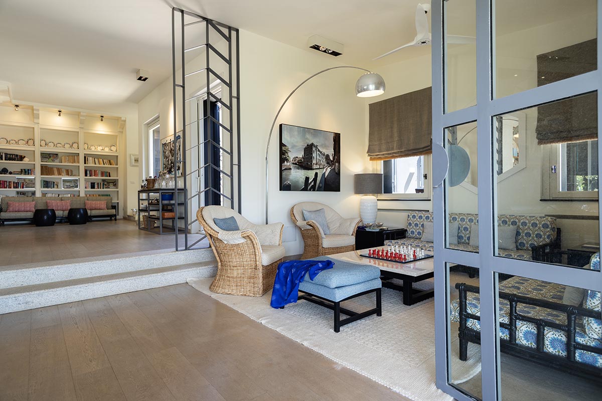 The villa accommodates up to 17 guests across nine refined bedrooms and seven bathrooms, making it an outstanding choice for large families or groups seeking a luxury villa rental in Sardinia with direct beach access. The interiors feature spacious living areas, sophisticated décor and modern amenities, including air conditioning, high-speed Wi-Fi, premium sound system and a fully equipped professional kitchen.