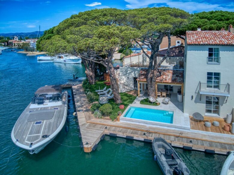 Villa My World is a beautifully refurbished seaside townhouse in Port Grimaud's elite enclave. This stunning house offers lots to offer guests on a summer vacation in the South of France, with a private boat dock, several outdoor living areas, and a private pool. The villa has 5 en-suite bedrooms and can accommodate up to 13 guests in total, making it a perfect location for a family gathering or a group of friends.